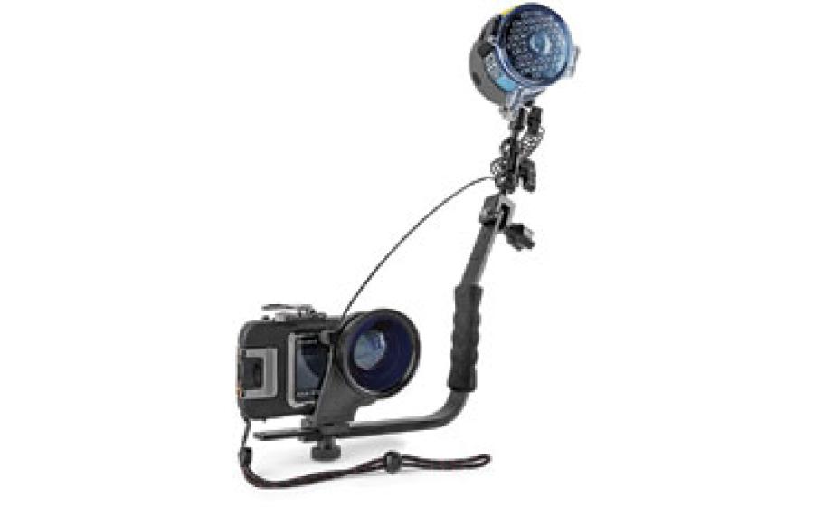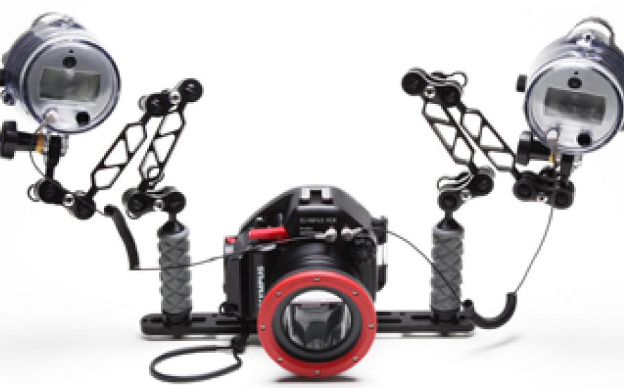 Ultralight Control Systems tray and arms for the Olympus Pen Camera maximizes flexibility in the way you set up your underwater photo rig.