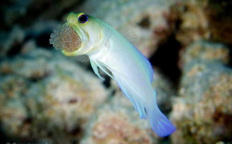 The nocturnal reticulate stargazer buries itself in the sand, with only its face protruding, waiting for unsuspecting prey to swim overhead.