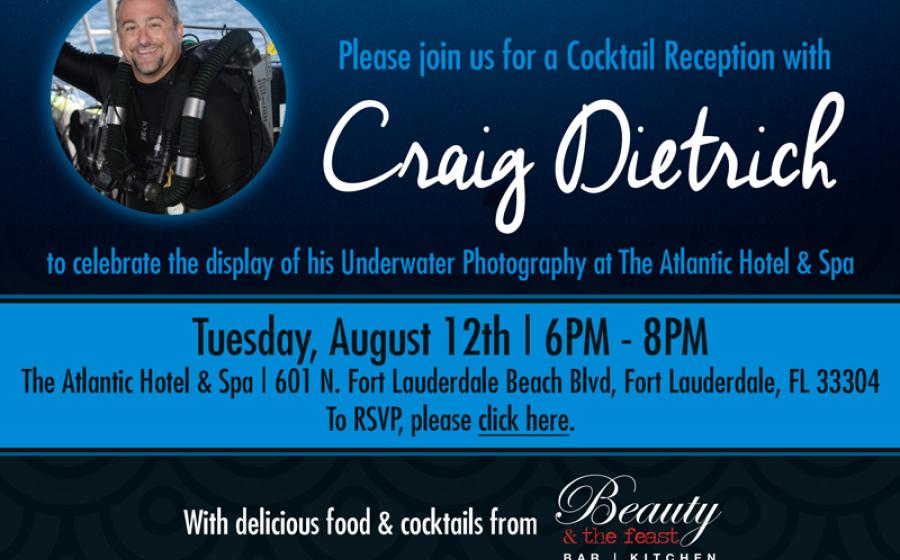 Want to shop for local underwater art? Award-winning photographer Craig Dietrich will have his images on display at the Atlantic Hotel and Spa in Fort Lauderdale, Florida, and you're invited to the premiere party!