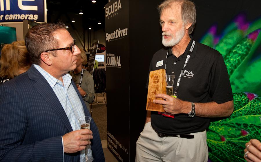 Coral-reef crusader and conservationist Ken Nedimyer was named Sea Hero of the Year by Oris Watches North America and _Scuba Diving_ magazine at the 2014 DEMA show. For his work restoring the reefs all across the globe, Nedimyer received a check for $5,000 to continue further restoration efforts.