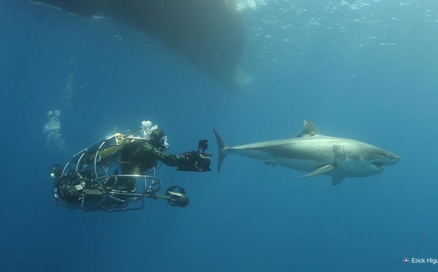 The self-propelled ocean cage was originally built to document feeding, fighting and mating events between sharks in Guadalupe.