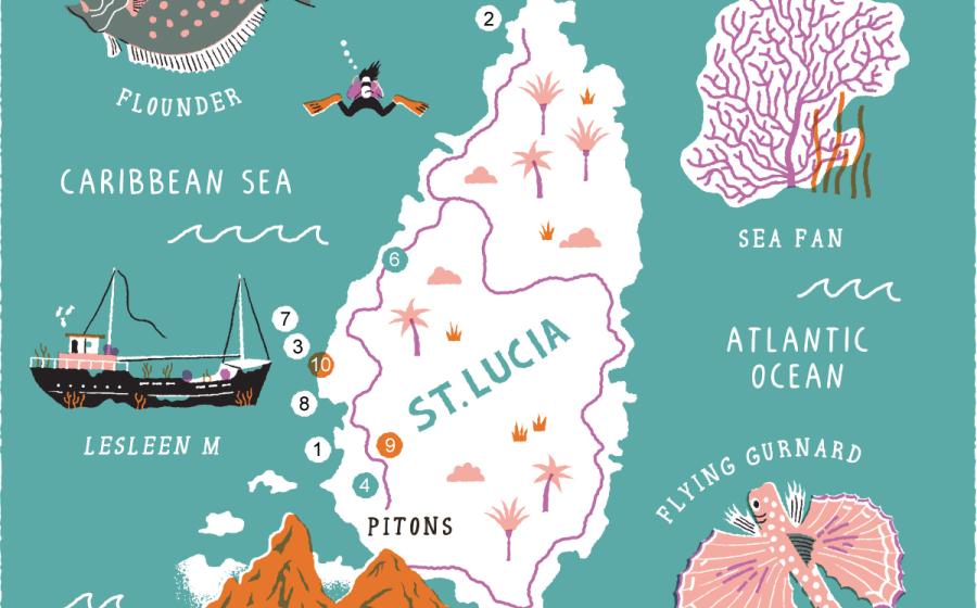 St. Lucia scuba diving guide offers the best scuba diving sites on St. Lucia and things divers will love on island.