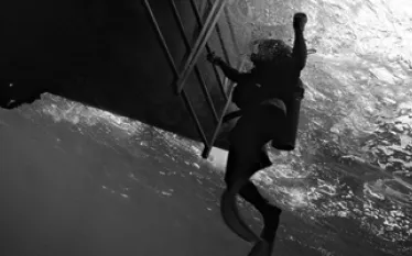 Two lobster divers ascend from a dive to find their boat is nowhere in sight.