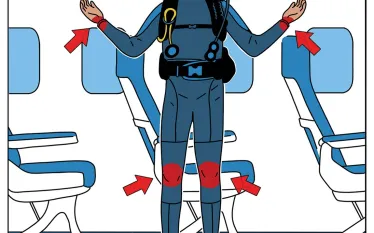 Ignoring mild joint pain sends a diver from the airport to a decompression chamber.