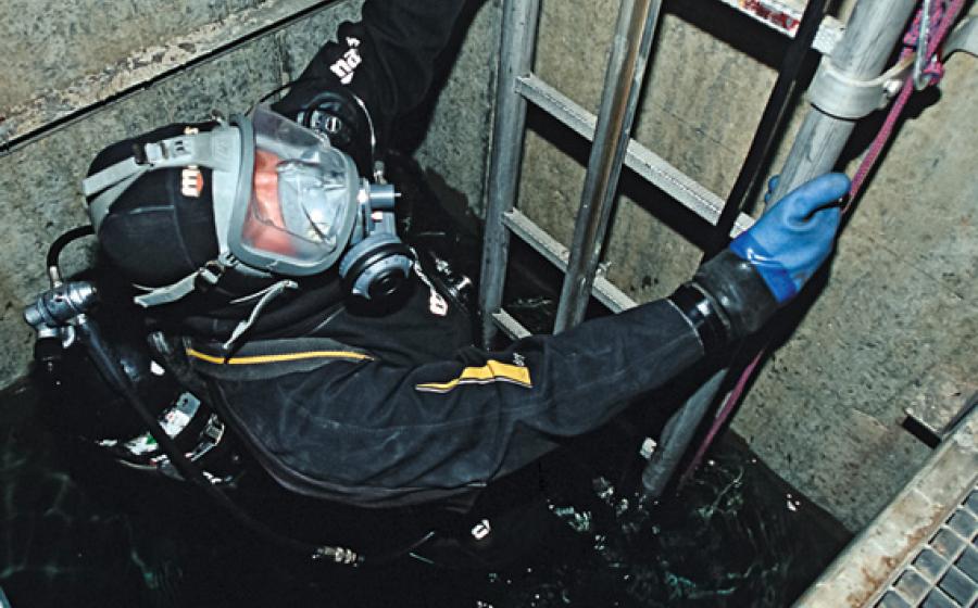 Tales in public-safety diving. This time: During a night operation, Tampa Police divers sneak into the rudder compartment of a foreign vessel to search for illegal drugs.