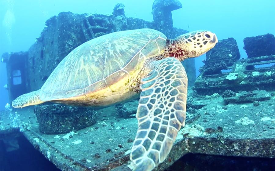 We went scuba diving with a green sea turtle while diving the Sea Tiger wreck in Oahu, [Hawaii](/hawaii). Check out the video of the marine reptile encounter!