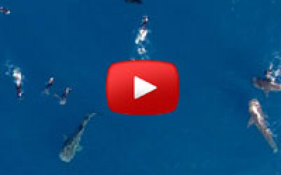 An air-faring drone captured video of whale sharks and manta rays feasting on plankton off the coast of Isla Mujeres, Mexico — and the lucky snorkelers who joined them!