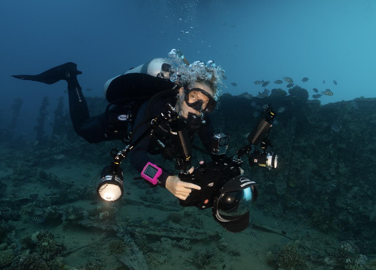 Heidi IngramOne such underwater photographer. Look at the size of that dome port.