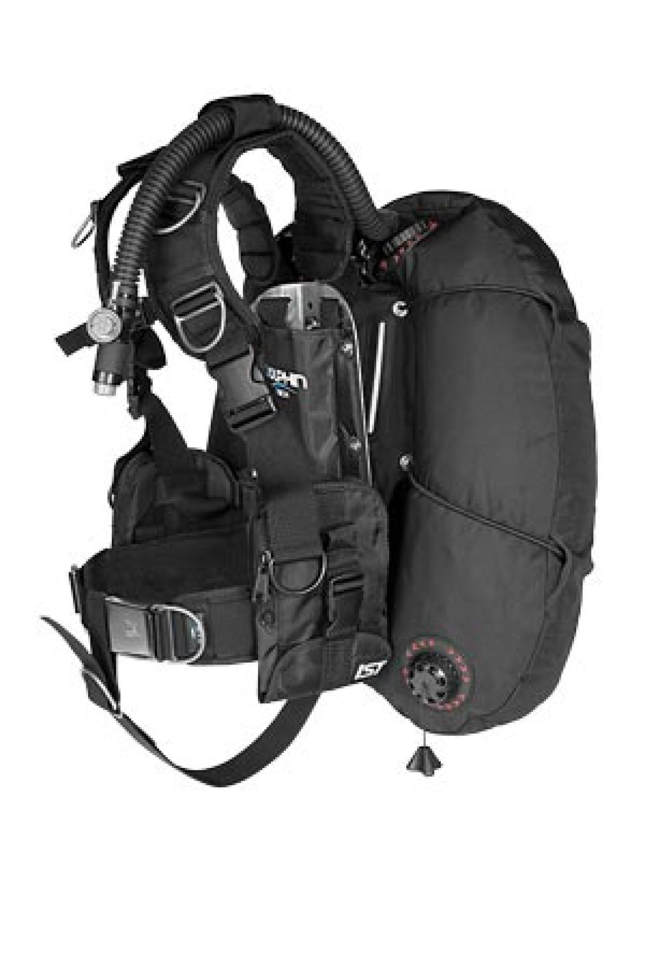 Available with either a 30-pound lift wing for single tanks or a 60-pound lift wing for doubles, the Pure Tek air cells are paired with a stainless backplate, continuous harness, multiple D-rings, crotch strap and a single tank adapter with supercinch straps. The heavy-duty harness and D-rings keep stage bottles securely in place and can be configured to accommodate any setup.