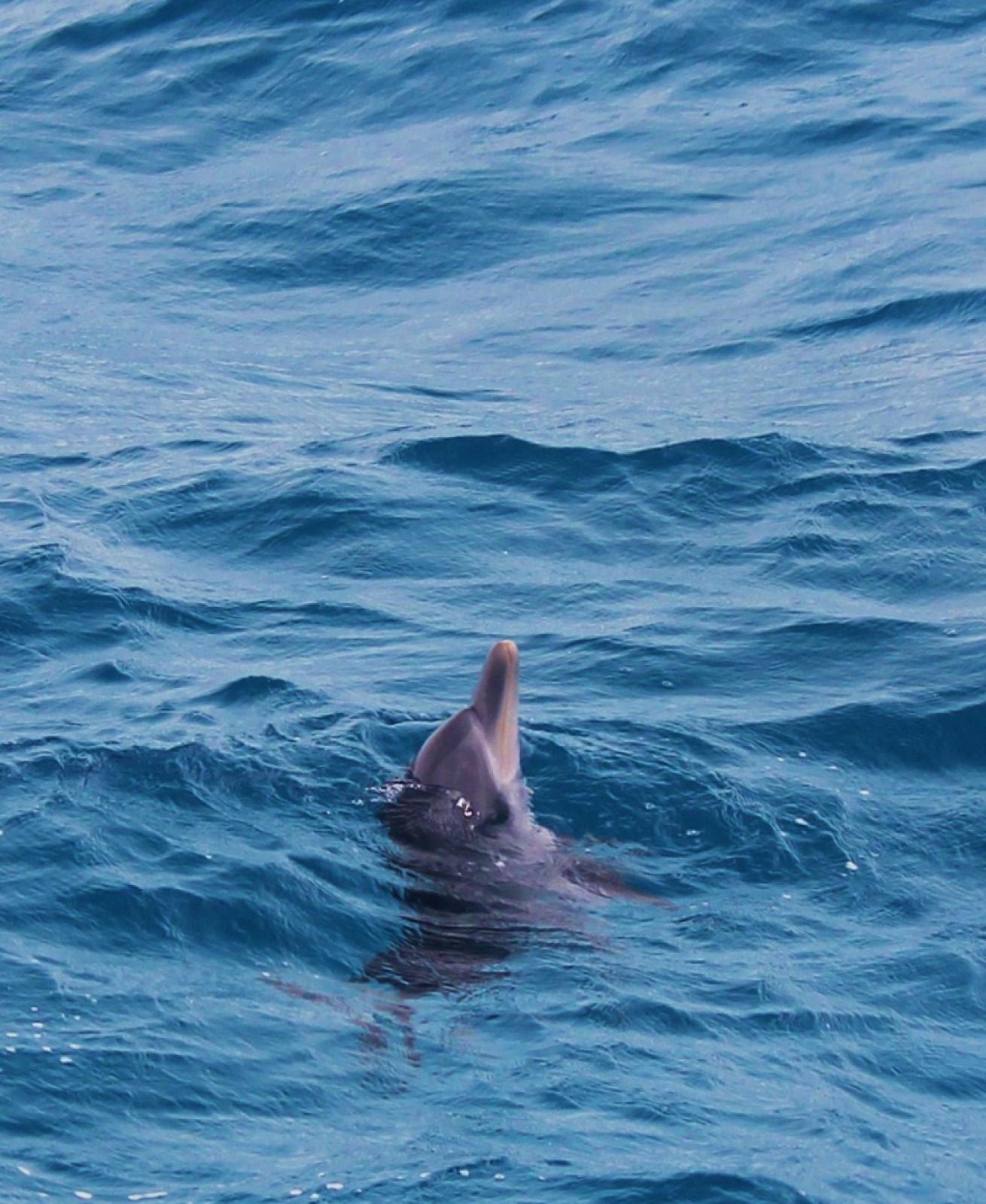 On the other hand, repeated contact between dolphins, such as touching pectoral fins, rubbing bellies or synchronous swimming, is thought to be behavior that helps maintain tight family bonds. And mating is often a group activity complete with underwater acrobatics. Overall, as dolphins move through the water they may be traveling (moving in a set direction), milling (either to forage or rest, sleeping with only one half of their brain at a time) or playing – sometimes using a bit of seaweed or marine debris in an apparent game of keep-away. Dolphins will also occasionally spy hop, or raise their bodies vertically to get their head above the water’s surface and look around. These pod dynamics and dolphin behaviors are well documented, so learning a little about them can be both easy and helpful when planning for an encounter. Plus, knowing how to interpret these behaviors can help fine-tune our interactions with wild dolphins, so we minimize affecting any changes in their important daily routines.