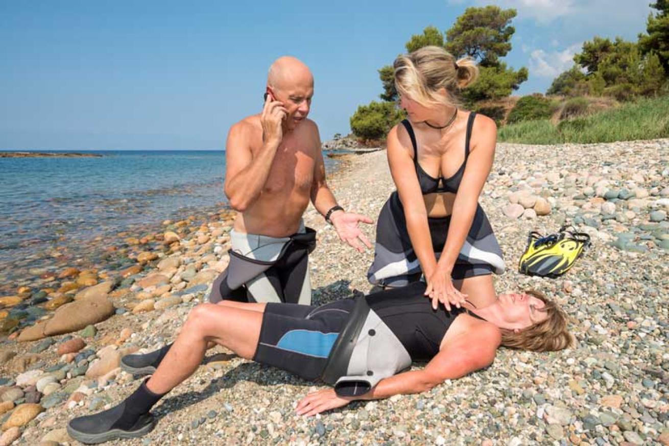 Better to wait for Rescue Diver for this, after you’ve got about 50 dives under your weight belt and the consequent buoyancy and air-consumption control, serenity, and confidence that comes only with experience. Then you’ll have the dive foundation on which you can build a medical-response room in your otherwise sturdy diving house.