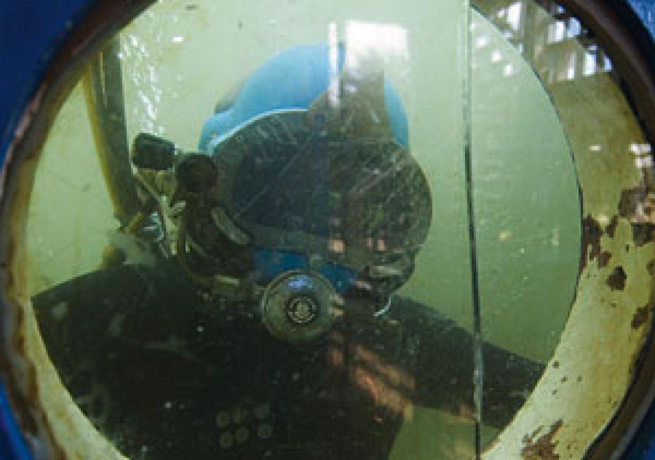 Nestled into the urban sprawl that is Houston, Texas, Ocean Corp has an unassuming appearance. From the front, its gate opens onto a small parking lot, and its façade gives every impression that it's just one more in the string of office buildings sharing its street. But when I crack the front door, a shelf of antiquated hats, spearguns and photographs greets me, and by the time I pop out the back end into the staging area, I'm transported to a more familiar world. Gear cages hold racks of drysuits patched with duct tape, banks of compressed air, scuba equipment and huge coils of hose. And a multilevel wooden platform behind the building is where the magic happens. The 4.2-acre campus has six diving tanks--three eight-foot tanks for underwater welding and cutting training, two 12-foot tanks and a 24-foot tank complete with a mock oil platform inside--not to mention a permanently installed medical decompression chamber, a portable decompression chamber and a 400-foot-rated lock-out diving bell.