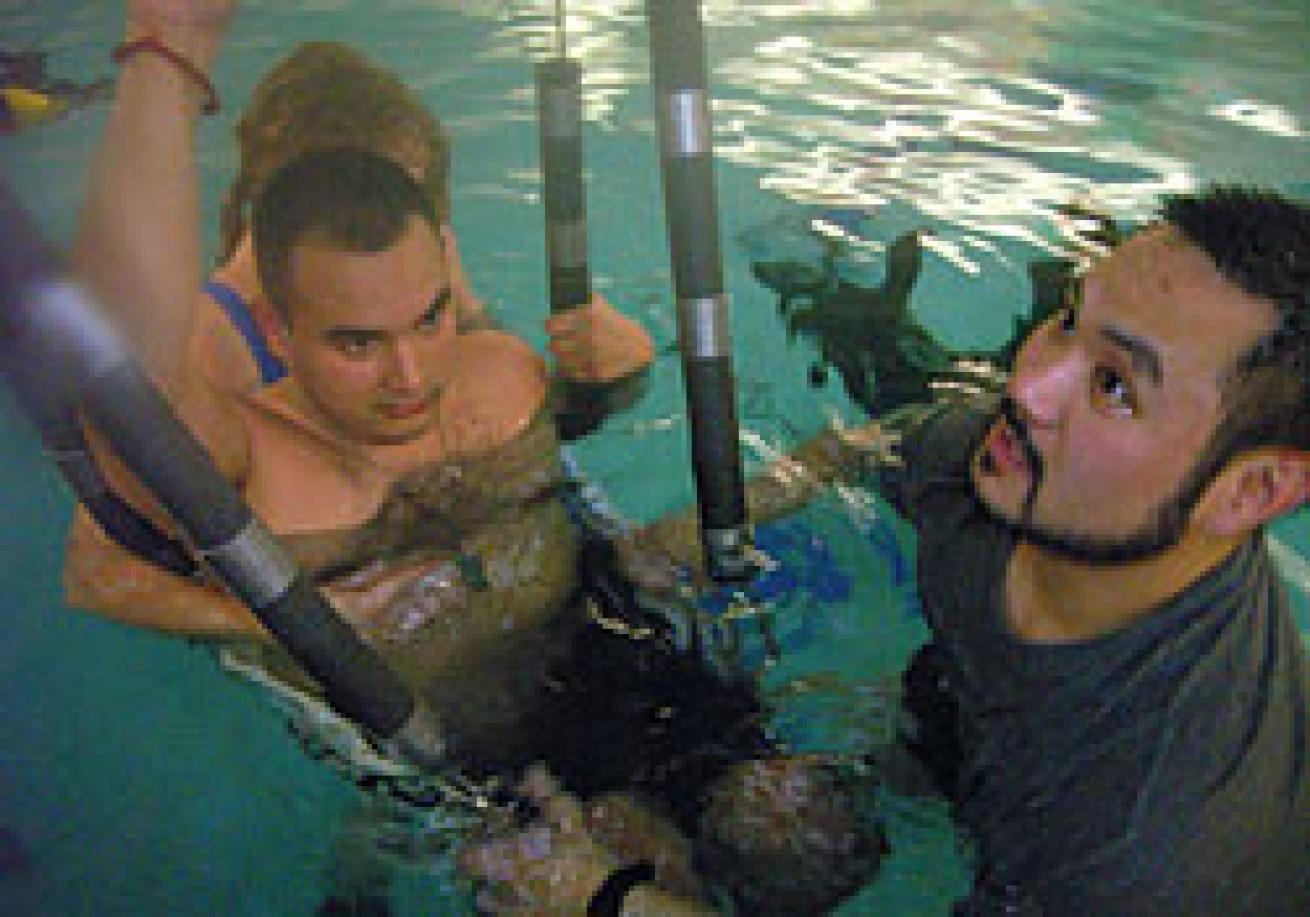 Underwater Warriors grew out of the efforts of Nancy MacPherson, a dive instructor and the self-described "quarry queen" of Kentucky and Tennessee. A little over a year ago, she started encountering so many wounded soldiers coming back from Iraq to Fort Campbell, near her home, that she was spurred to walk in to Blanchfield Army Community Hospital and urge them to let her put injured soldiers on scuba. Now largely based at the Fort Campbell pool, MacPherson and her volunteers run Discover Scuba programs for wounded soldiers and their families, most of whom are still in therapy. They've seen about 20 wounded soldiers through dive certification, including a group of five who went to Cayman Brac for warm-water certification dives in March (see "Heroes on the Brac").