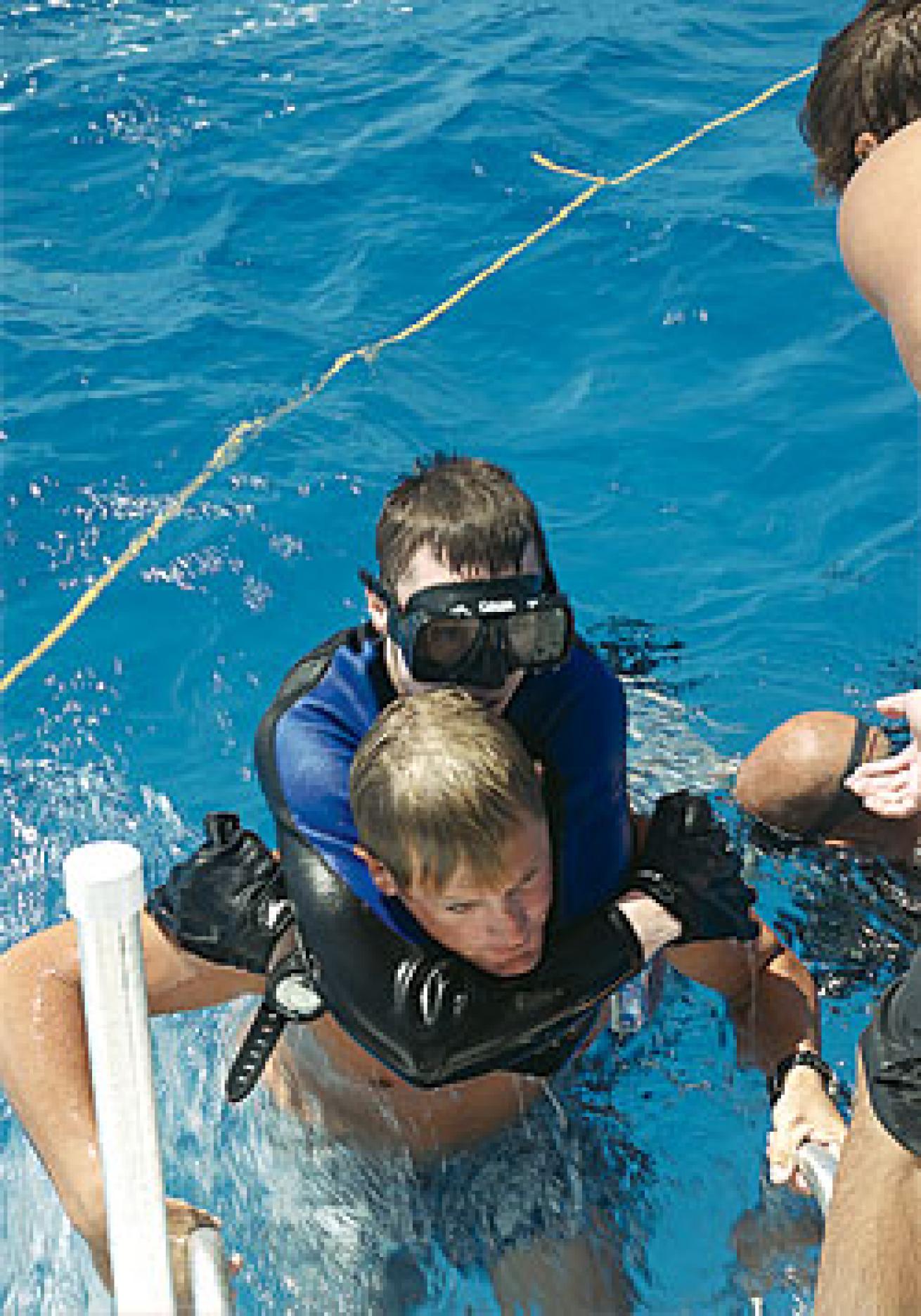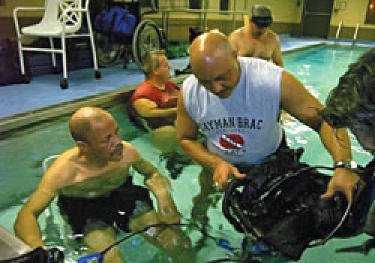 Stewart Snyder, a HSA-certified course director, has been diving with disabled people for 14 years, but he says he'd never seen anything quite like the power of these relationships. It started when Snyder ran the shallow Discover Scuba pool at a military disabled watersports festival in Rockaway, N.Y. He helped give 35 soldiers a taste of scuba. And at the end of the day, 10 were anxious for more bubbles. One of the firemen who'd been volunteering for the scuba experience offered his home pool, and the group moved right into two days of scuba classes and water work. Captain Don's Habitat donated a warm-water week on Bonaire to make their checkout dives.