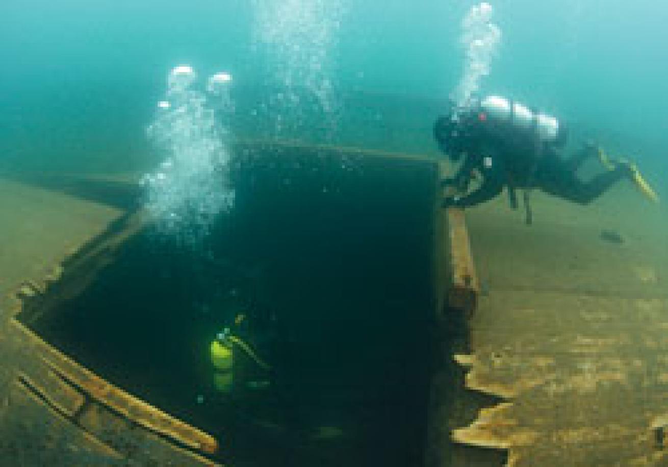 Pinpoint buoyancy control. "Buoyancy control is extremely critical inside a wreck," says Sean Harrison. He's vice president of training and membership services at SDI, and has taught many wreck diving courses. Inside a wreck, you may have to maintain your altitude to within a foot or so, maybe even inches, to pass cleanly through an opening or avoid scraping the overhead. Easy? Maybe not. "I think the buoyancy-control issue is going to be the biggest surprise for most divers taking a wreck course," says Bill Stone, of Orlando, Fla. It was for him when, with several specialty courses and more than 100 dives in his log, he took a wreck course in 2005. "When you're swimming outside a wreck, you think your buoyancy control is great because you can follow the deck line exactly by finning forward. But once you challenge someone to go inside a confined space and not touch the top or the bottom, inevitably it's a different story."