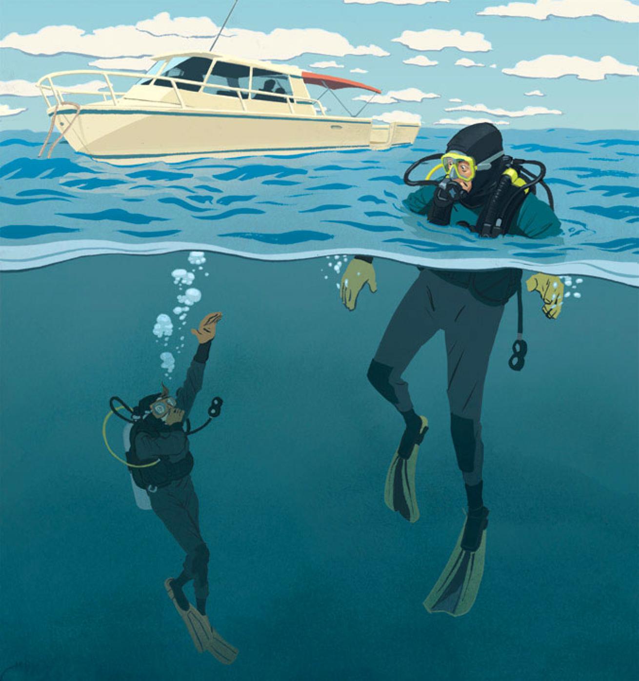 It is debatable whether Steve should have stayed with his buddy or ascended and attempted to get help as he did. If he had descended, he could have jettisoned her weights and brought Natalie back to the surface. To do that, he would have had to descend very rapidly himself, just to keep up, and possibly injured himself in the process. He was not experienced at performing dive rescues, so it is likely he didn’t know what to do. Many divers don’t. An inexperienced diver attempting to make a rescue can sometimes put two people in trouble instead of just one.