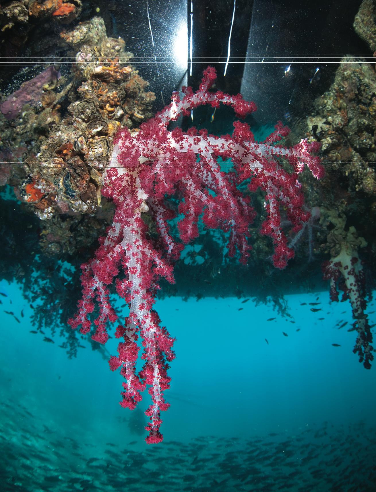 Ethan DanielsSoft corals grow to within inches of the planks.