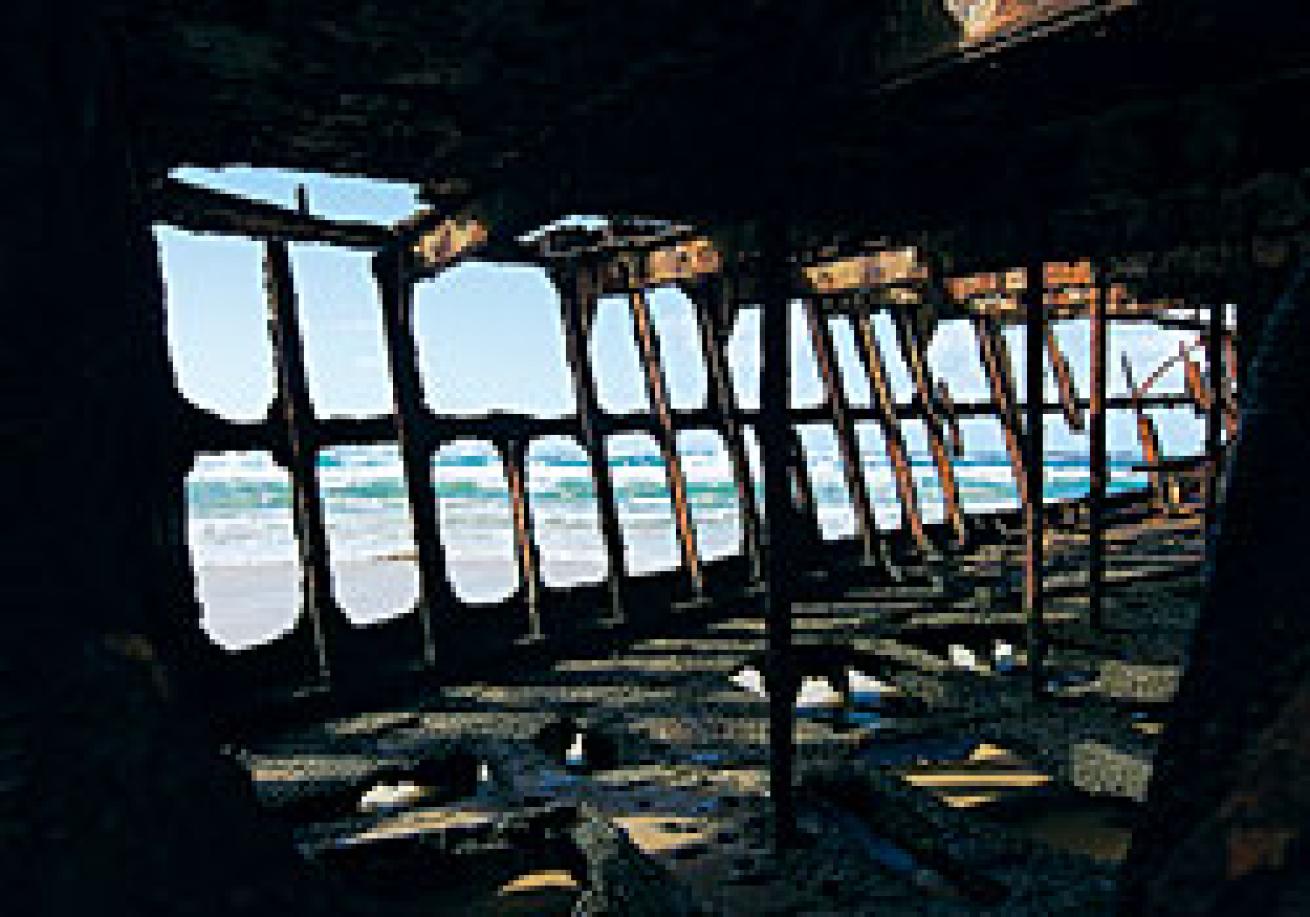 We also pass the wreck of the Maheno, the coolest wreck you'll never dive. Like the skeleton of a beached whale, this Scottish luxury passenger ship sits stranded atop the vast beach, where it ran aground in 1935 while being towed in a cyclone. To add insult to injury, Aussie pilots used her rusting carcass for bombing practice during World War II.