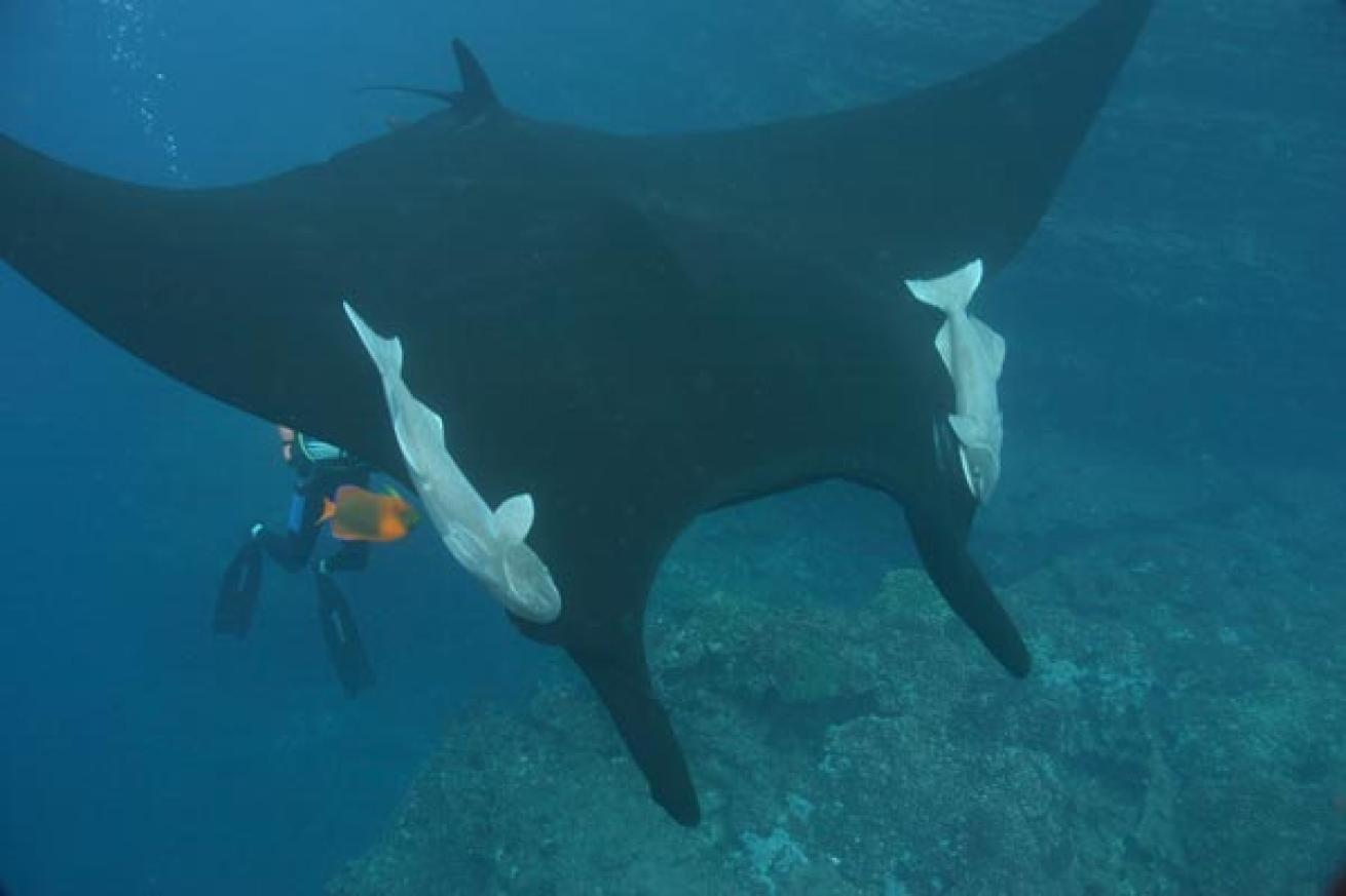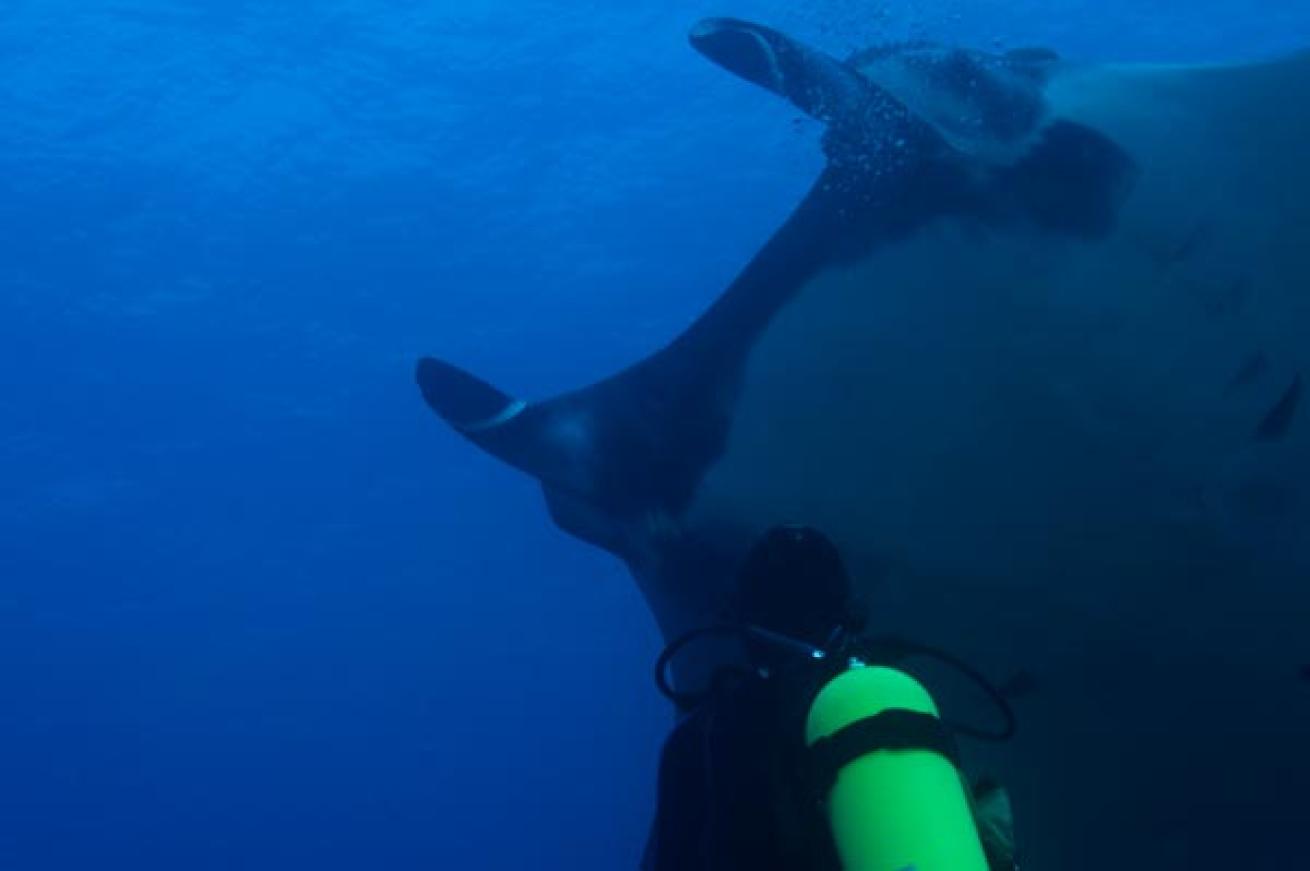 The highlight of the day was the continuous presence of humpbacks. We’ve seen them every day of the trip so far, but on all four dives we finally heard them. It was really something special to be serenaded by these in-tune crooners. We could only guess as to how far away they were based on the vocals. Guests who didn’t make the last dive reported seeing them almost on top of us, but with the viz a poor 20 to 30 feet, it would’ve been difficult to see them anyway. The previous three dives we made blue-water safety stops, and we were always hoping we’d come across one in the blue. But it wasn’t to be.