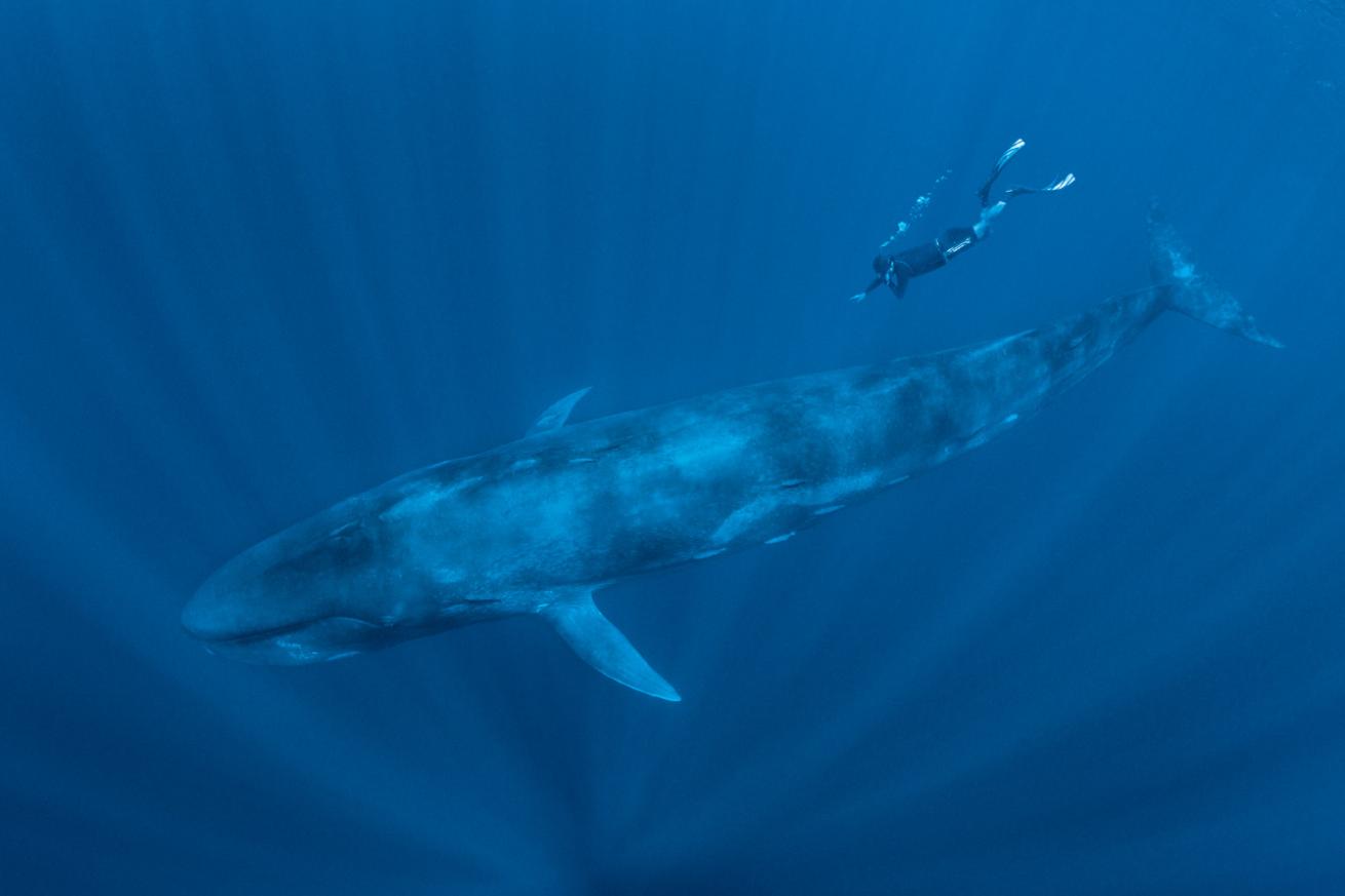 We intercept the whale’s route as directed by our scout plane, and then, quickly and very quietly, we enter their space and let them get comfortable with us. It’s then that it hits you: you’re diving alongside a blue whale. It’s like swimming next to an 18-wheeler, cruising along at 12 mph. A few thoughts about the star of the show: The blue whale is shy. They are solitary animals, and there are only 12,000 or so left in the world — down from a population once numbering 250,000. I have swum with them so many times, I’m getting to know them all. because it’s so big and the krill are so small — only about a half- inch long — each blue whale consumes some 30 million krill or so just to get through the day. Good thing krill like to hang out together.