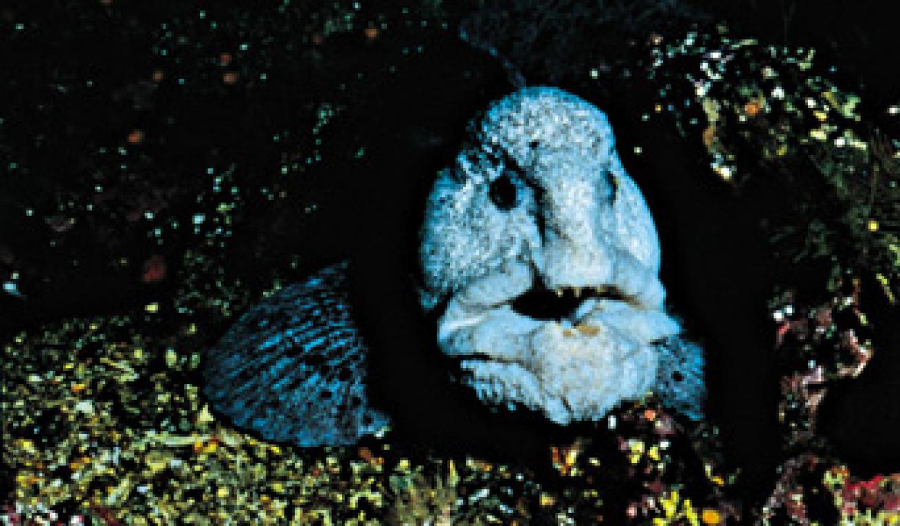 As we neared the bottom at 70 feet, I felt like something was watching me. Turning, I was startled to see a face that looked like a cross between Oscar the Grouch and an old baked potato: a face that only a mother wolf eel or diver could love. Rubbing against my arm, the puffy-headed wolf eel clearly wanted to be petted, and just like a dog, kept coming back whenever I stopped.