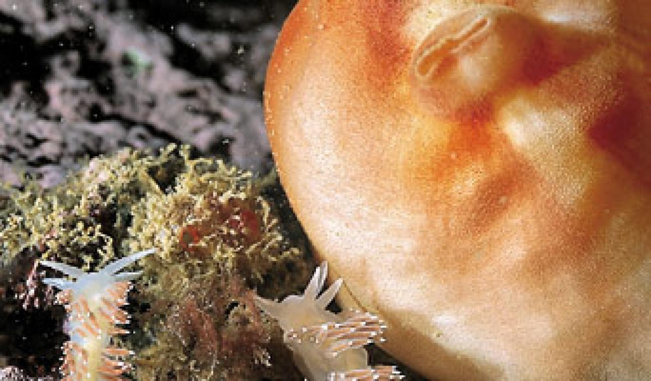 The key, obviously, is to go in only at slack water--the lull between tides. Sure enough, as we geared up, the flooding tide peaked and soon the bay fell calm. We dived down along a sloping ledge covered with urchins, then rounded the wall's corner to come face-to-face with a barrage of color and life. Massive yellow sponges covered the rocks, interspersed with oversized northern red anemones. Sea stars of just about every size, shape and color packed the ledges.