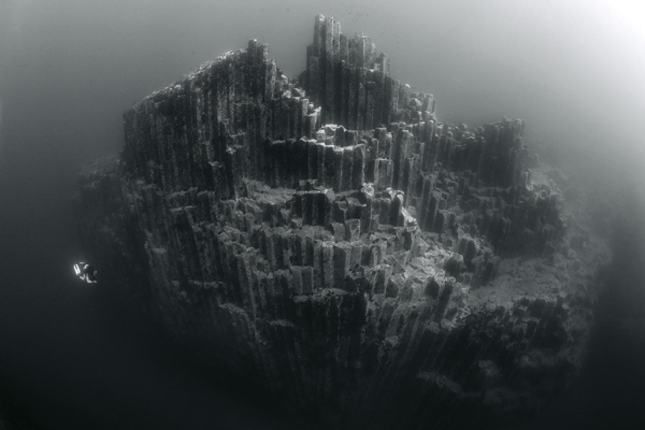 North of Tenerife, in the Canary Islands' protected area called Acentejo, is this basalt formation, La Rapadura. During an eruption, lava basalt came into contact with the sea, forming the spectacular structure. Erosion has caused some columns to fall to the base, nearly 165 feet deep. This is the biggest-known columnar disjunction in Spain — diving here is like flying over a medieval city in ruins.