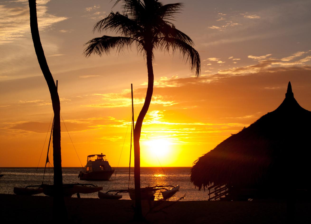 Sven BannuscherThe sun sets over the water at Noord, Aruba.