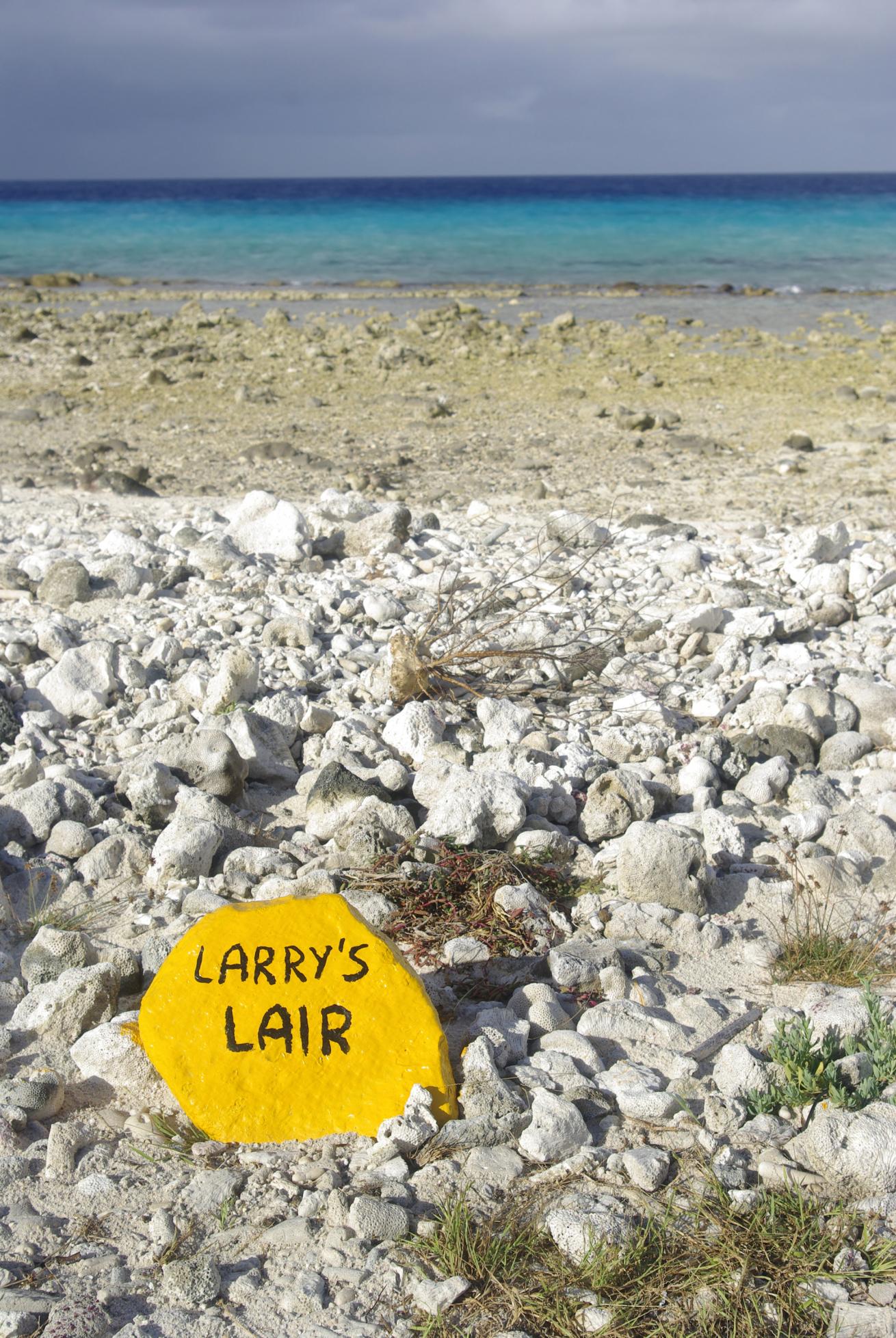 Lawrence RobergYellow painted stones mark all of Bonaire's shore-diving sites.