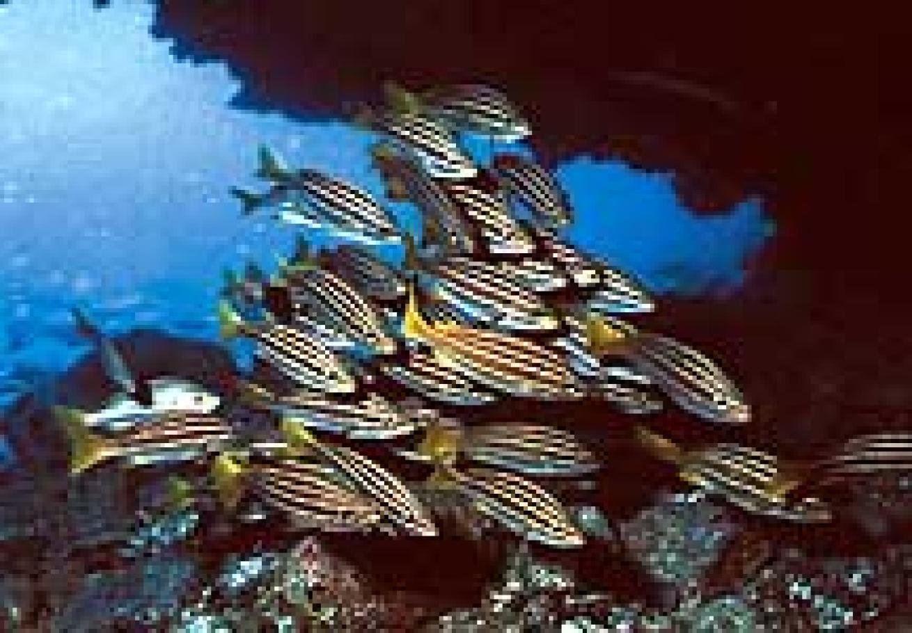 A site called Atlantis features a triangular platform of basalt rock consisting of hexagonal crystals. Some of the crystals have fallen away to resemble the ruins of an ancient city (hence the name of the spot). They are a photo-perfect backdrop for swarms of fish and red and yellow gorgonians.