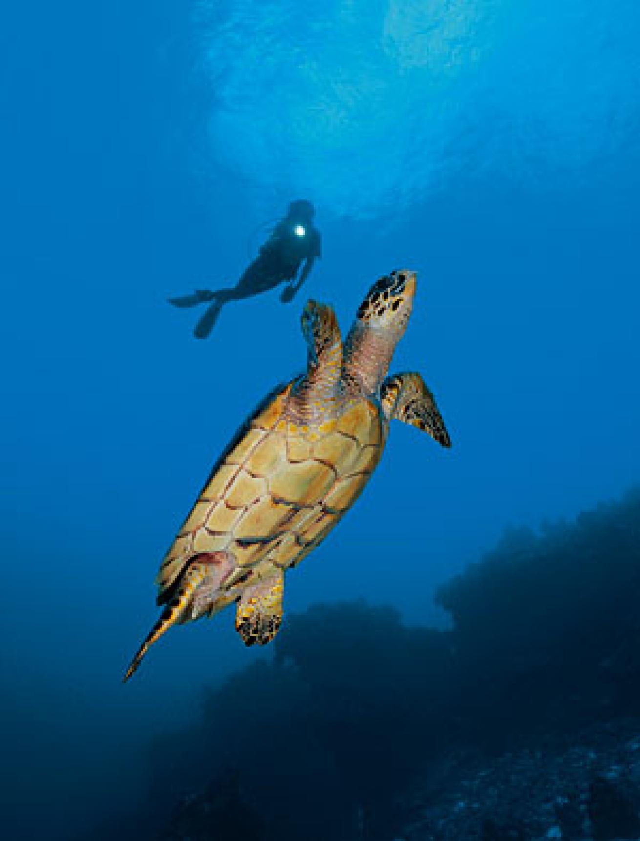 This exposed reef lies just south of the island, and it's subject to strong currents and surface conditions. But the often stellar visibility paired with terrain comprising forests of steep coral and rock pinnacles shaped by the strong currents make this a can't-miss dive. Giant grouper and lazy sea turtles tuck into the ledges, and the site's proximity to the drop-off makes encounters with sharks and rays a distinct possibility.