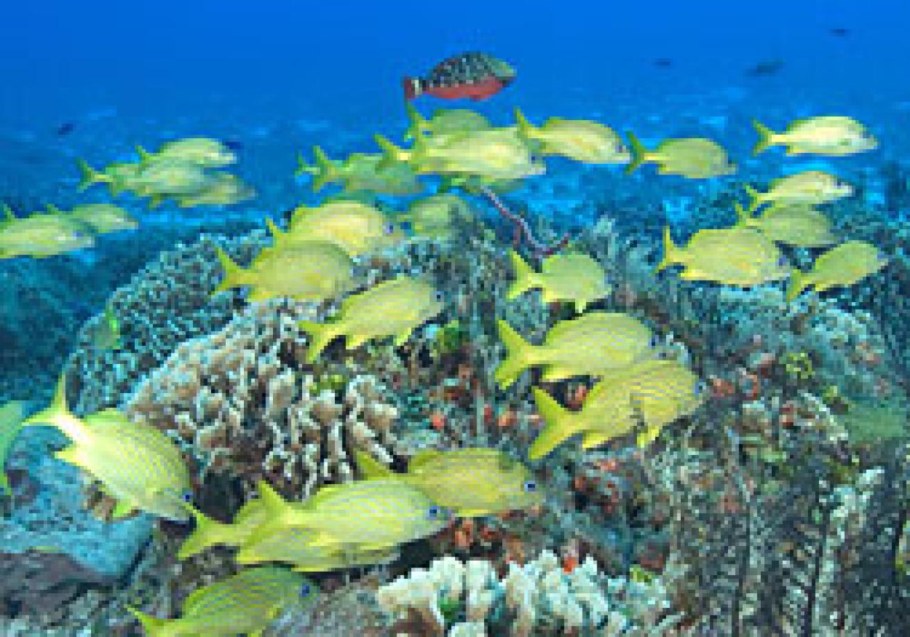 Cozume's reefs are home to a number of reef tropical fish, including smallmouth grunts, stoplight parrotfish, and French angelfish.