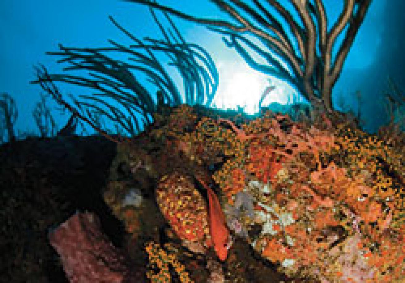 The Grenadines is a chain of more than two dozen islands stretching north to St. Vincent. On our itinerary was a stop at Mayreau Island and the nearby Tobago Cays. The low islets with palm-studded beaches (movie buffs may even be able to identify Petit Tabac, the island where Elizabeth Swann and Capt. Jack Sparrow were marooned in the first Pirates of the Caribbean) were a stark contrast to the towering rock islands we'd been diving for much of the cruise. They're also protected by a series of fringing horseshoe-shaped reefs, so when we dropped into Mayreau Channel, the current was just strong enough to carry us along in a surreal, dreamlike fashion. Adding to the gentle ambience was the reef itself, deep coral canyons made all the more colorful by the abundance of light reflected off the white sand.