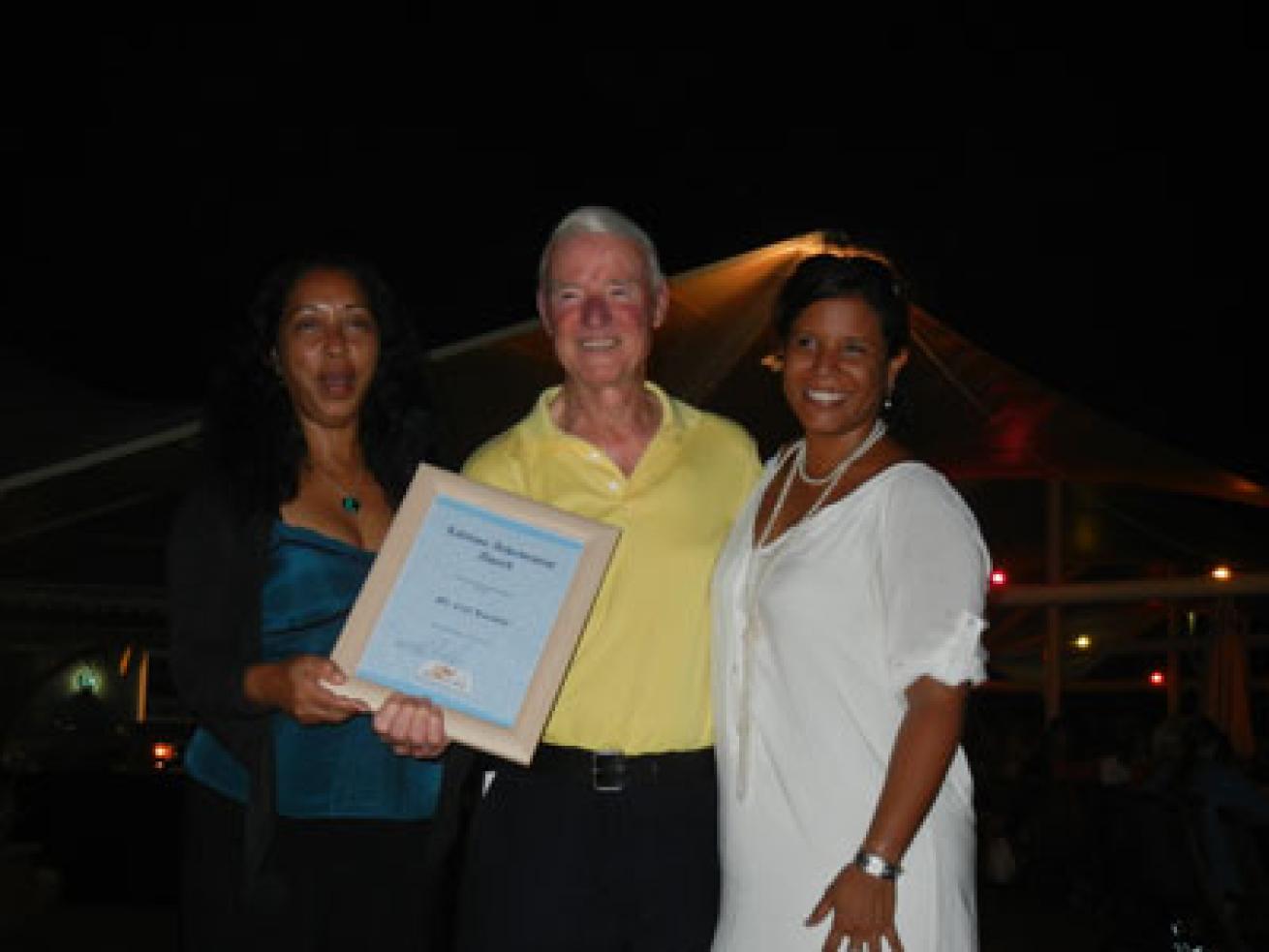 Stephanie WorthRoessler is presented with a lifetime achievement award for his contributions to developing sustainable dive tourism in Bonaire.