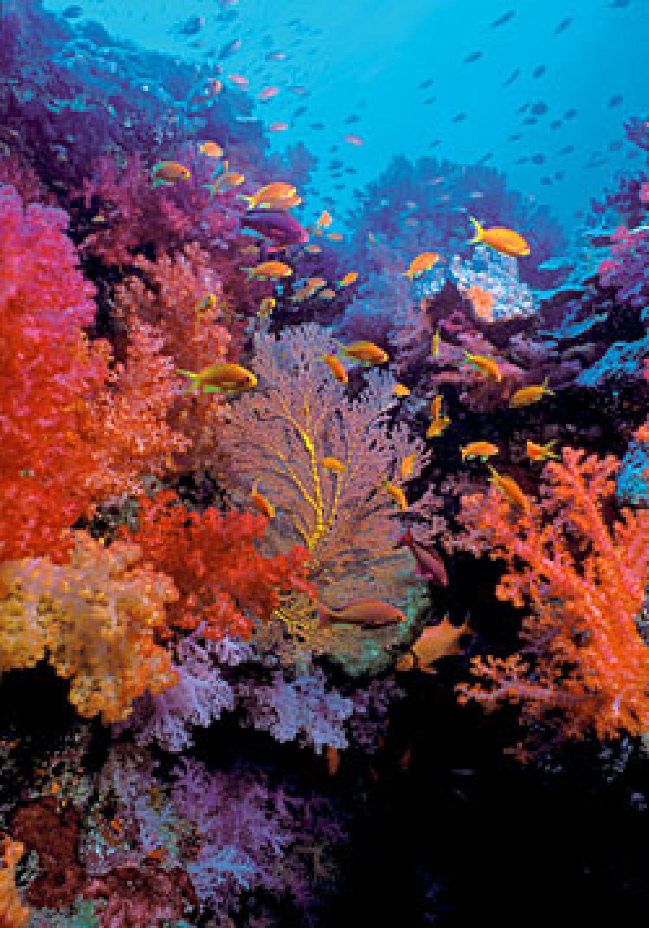 In still waters, normally brilliant colonies of Dendronephthya soft coral retract into protective, knobby fists, and a reef that's a Jolly-Rancher-colored spectacle in normal conditions becomes a mundane rockscape. But when currents push fast-moving water over a soft-coral reef, these assemblages of tiny animals unfurl their jewel-toned branches to feed on the nutrients that ride those currents. Put your mask close to a soft coral tree to find each colony of Dendronephthya plumping itself up, taking on water to filter for food until its translucent membrane practically glows. Then, for a more expansive view, move two fin-kicks away from a soft-coral-covered wall when the current is running--the stronger the better--and you will find one of the most spectacular sights under the sea.
