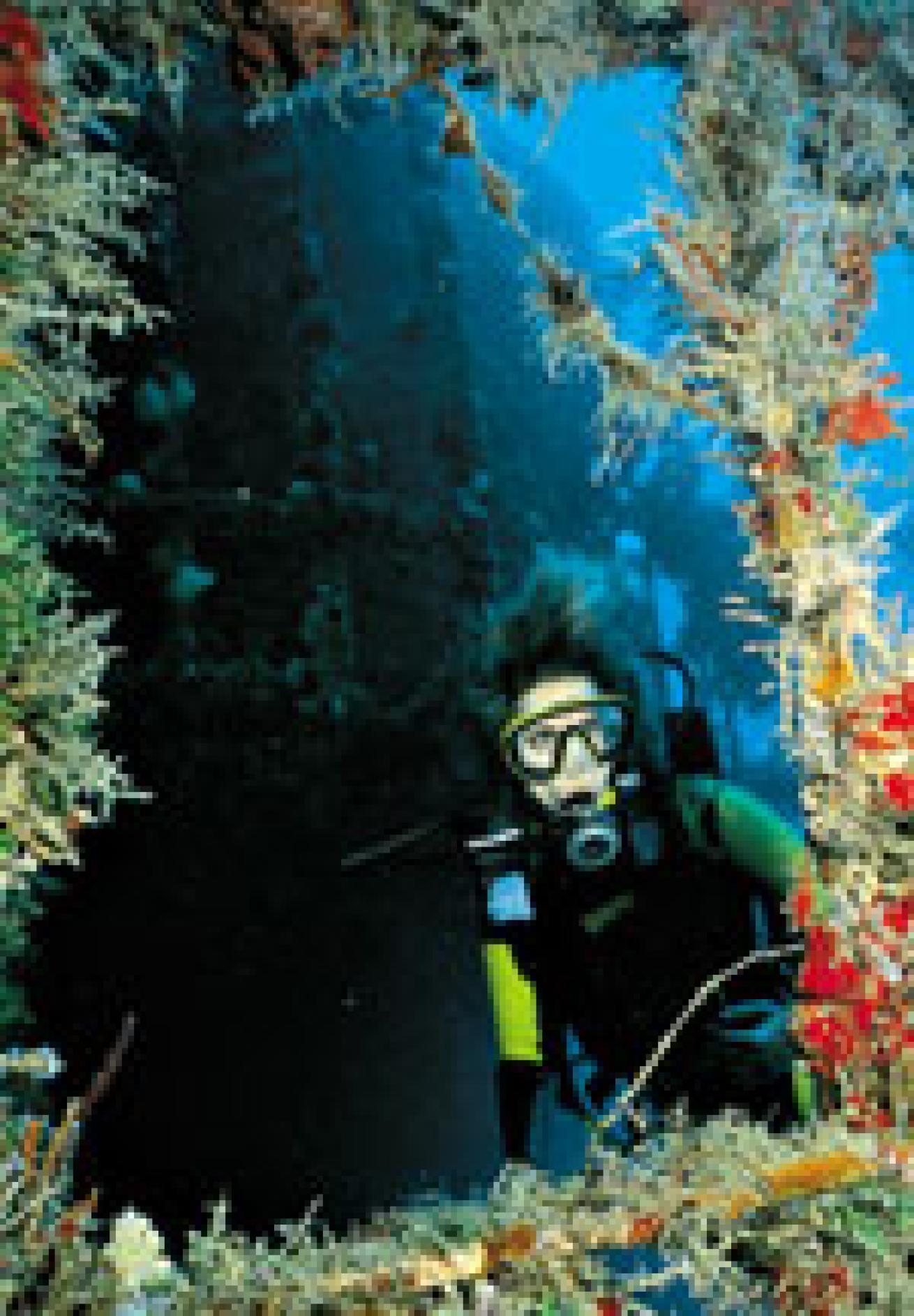 The wreck of the Eagle sports profuse coral growth and fish life.| Dutch Treat