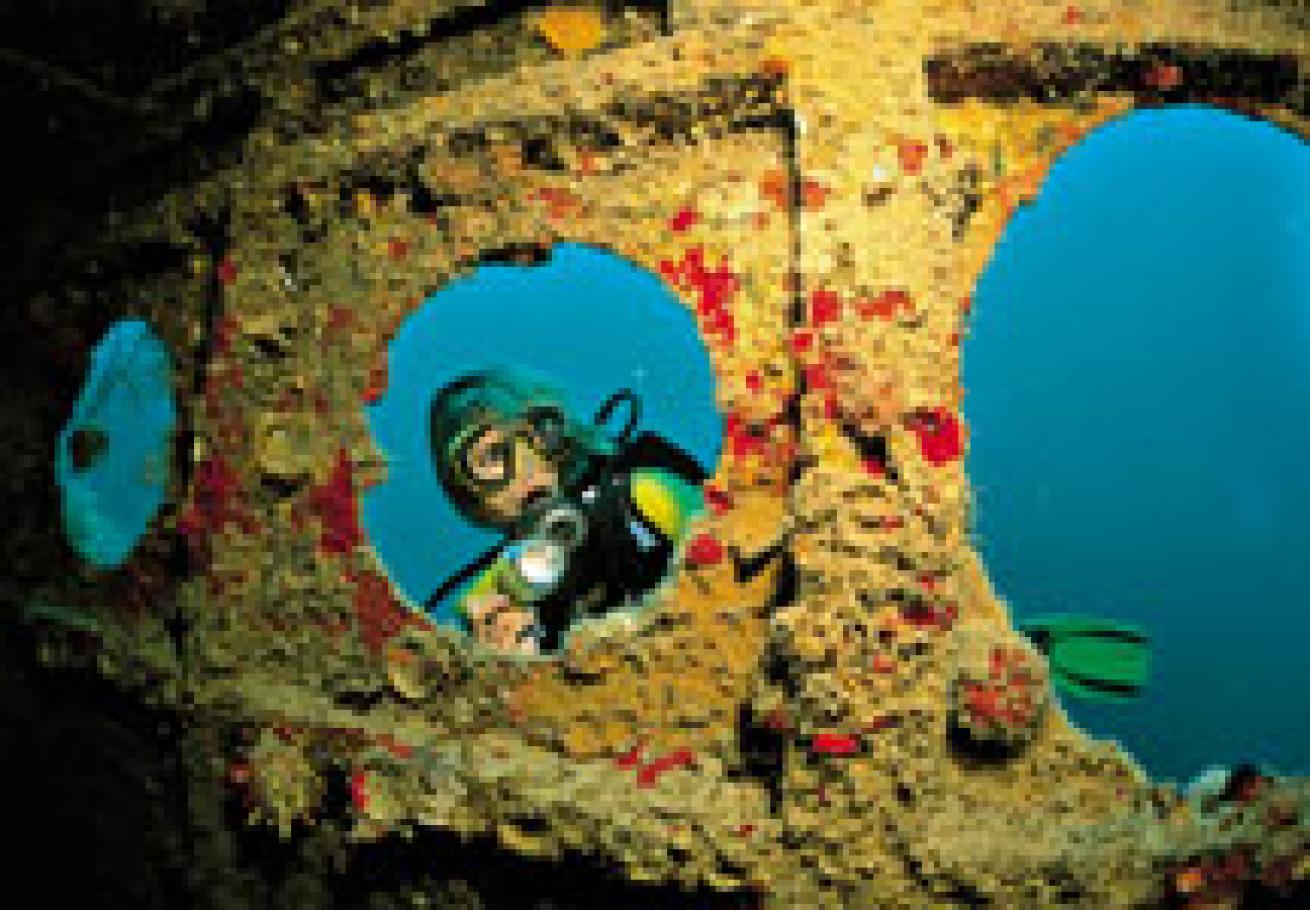IN A NUTSHELL: A fully intact wreck that's swathed in a multicolored coat of encrusting sponge and pulsating fish life.