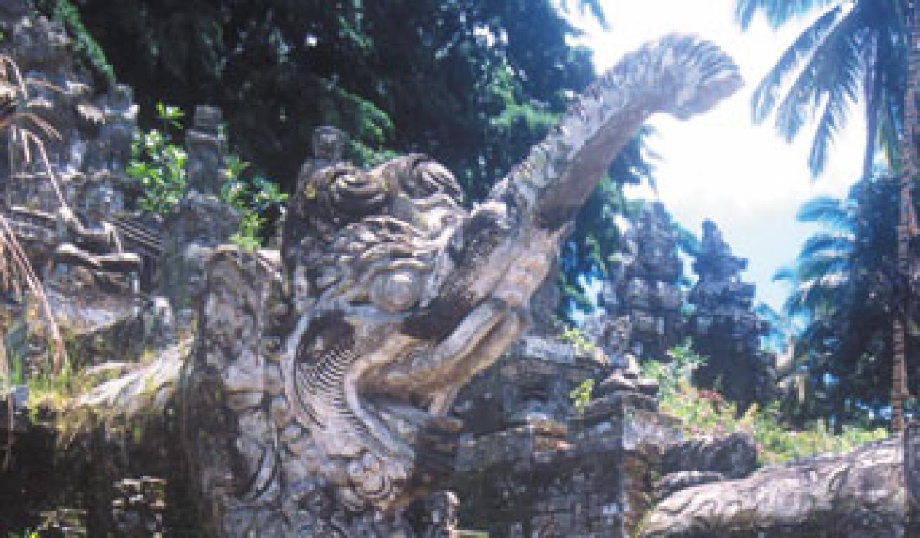 As Indonesian islands go, Bali is fairly small, about 84 miles long by 48 miles wide, situated between the Bali Sea to the north and the Indian Ocean to the south. It is also volcanic, and the volcanoes here are decidedly active. There hasn't been a major eruption since 1963, but there will be another one some day. The volcanic nature of the island is as much a blessing as a curse, because the rich volcanic soil is one reason that Bali is so exceptionally verdant.
