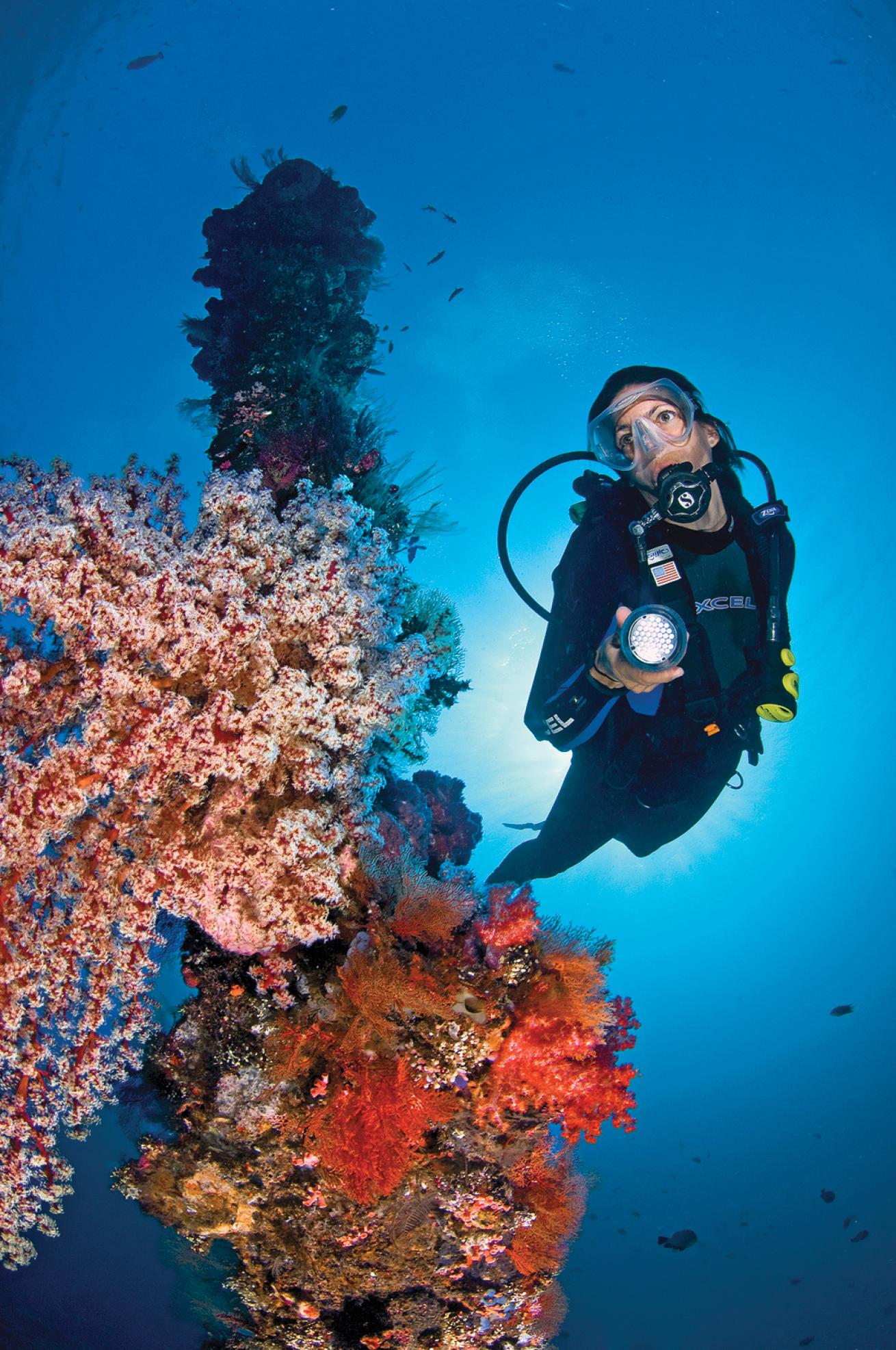 At Tulamben on Bali’s northeast coast, land and sea converge in a spectacular setting under the gaze of Mount Agung, Bali’s most sacred mountain. For divers, the pilgrimage point is the wreck of the USAT Liberty, accessed by easy shore dives. The nearly 400-foot-long American supply ship was anchored off the coast of Lombok during World War II when a Japanese torpedo hit it. The U.S. Navy intentionally stranded the ship on Tulamben’s rocky shore to unload its cargo (there were no casualties), and years later, Mount Agung’s eruption pushed the wreck to its present position. Covered in soft and stone corals, the ship teems with life, including myriad reef fish and the occasional huge barracuda. Continue west along Bali’s north coast and you’ll reach Menjangan Island National Park, where Bali’s steepest wall dives deliver the richest diversity of gorgonian fans — with the schooling fish and colorful coral backdrop, it’s a photographer’s paradise. And the mecca for macro lovers is nearby at Secret Bay, where muck diving yields such treasures as nudibranchs, gobies, dragonets, frogfish, seahorses, pipefish, flatworms and more. — Terry Ward