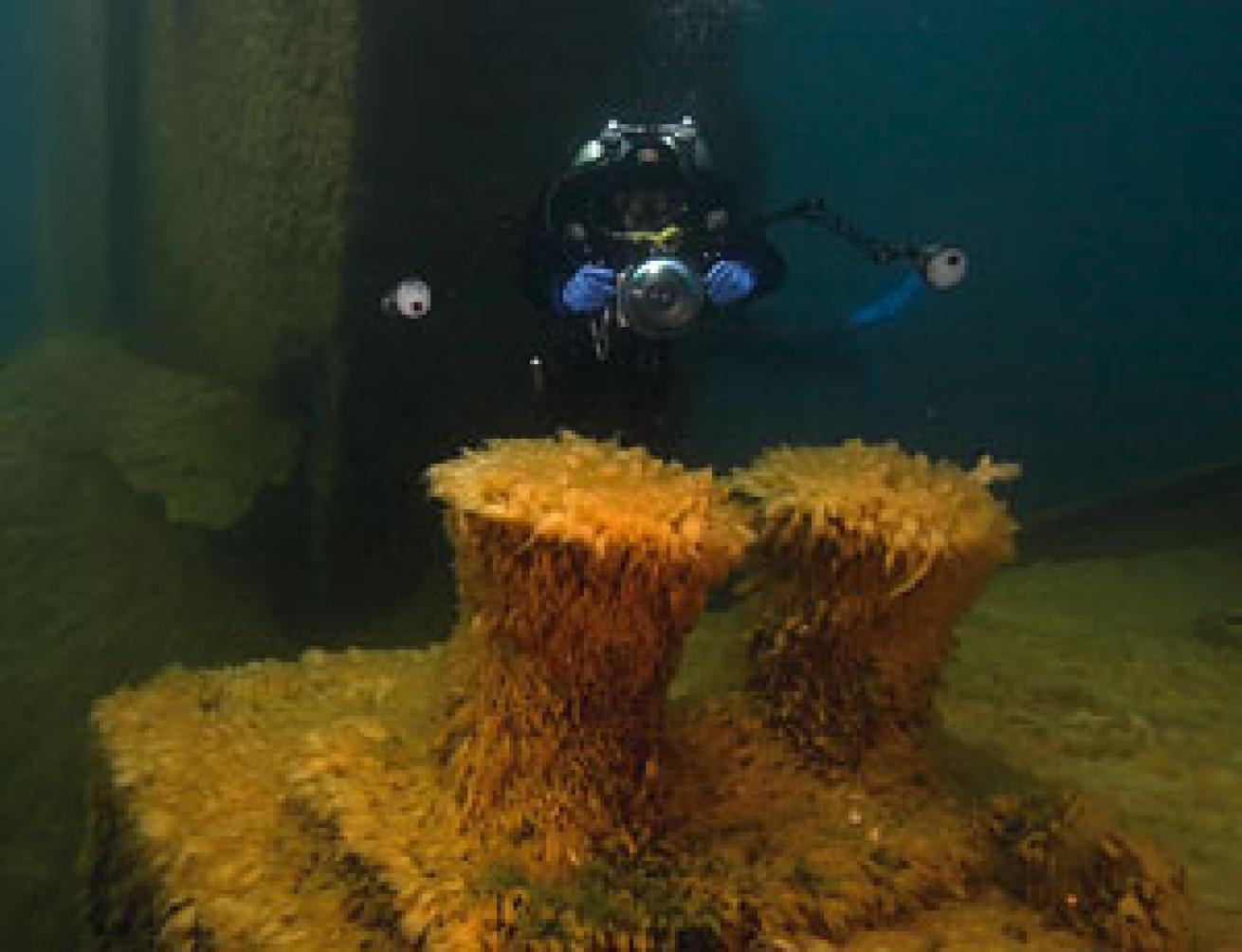 What attracts divers to this area, beyond the fact that it's an underwater archive of Great Lakes shipping and commerce, is that many of the ships are in pristine condition. Why? Saltwater corrodes. Freshwater protects. And that's what makes this sanctuary unique. Ships like the Grecian--a turtleback freighter that sank in 110 feet of water during a 1906 storm and remains perfectly preserved 100 years later with her windlass, pulleys, side rails, capstan and three anchors still in place--and the Monohansett--one of Thunder Bay's most visited wrecks that, in 16 feet of water, is accessible even to snorkelers--make ideal destinations for divers of all levels who want to experience these living time capsules.