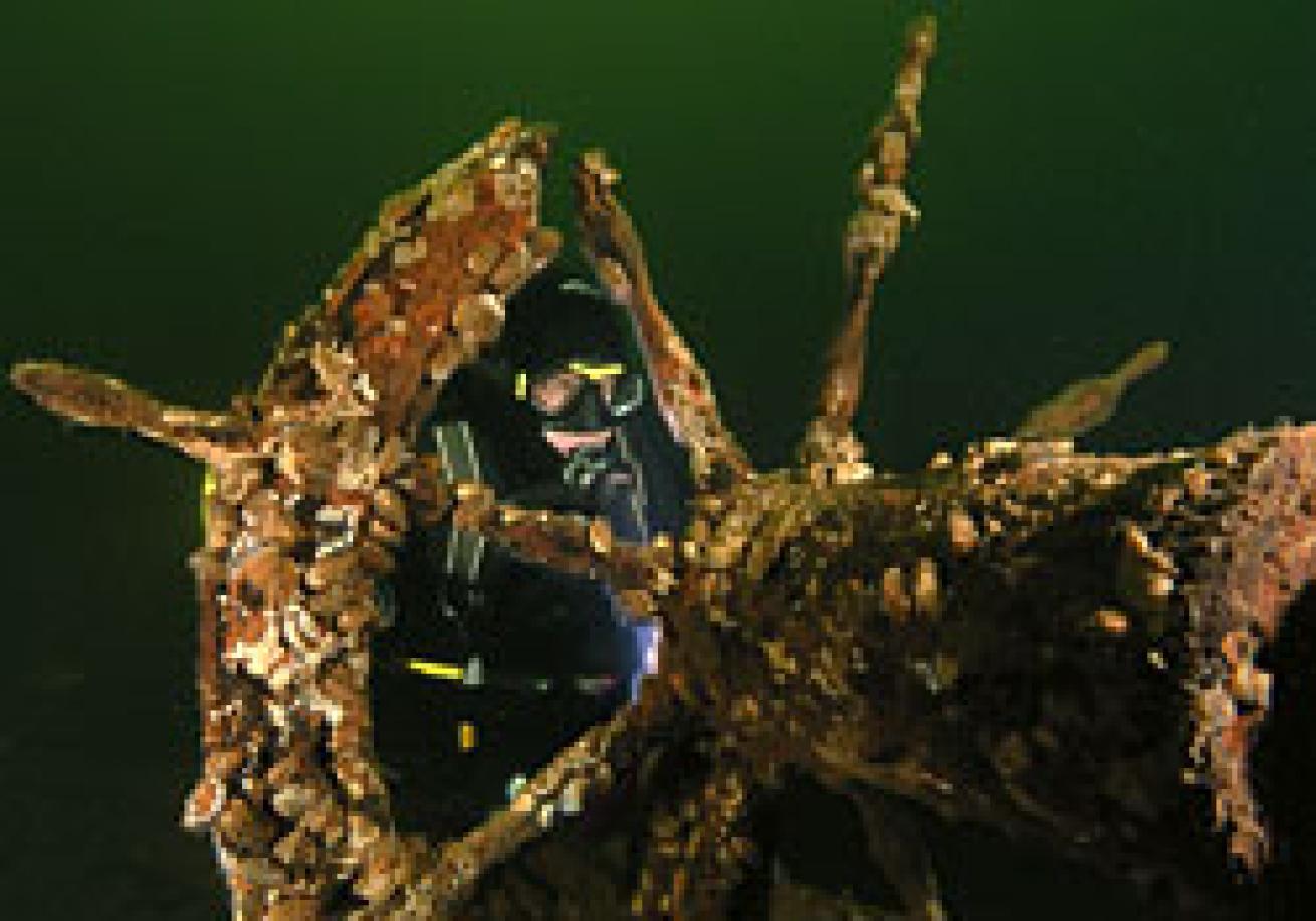 Dive Conditions: In June, water temps are in the low 50s, but by August, they can be in the low 70s. Expect thermoclines with temperatures dropping the deeper you descend. Visibility ranges from 20 to 35 feet. The standard suit for summer diving is a 7 mm wetsuit. Before diving the preserve, you must register for the season--free of charge--with a dive shop, charter boats, the Lake Champlain Maritime Museum or the Burlington Community Boat House. After each dive, soak gear in hot tap water before entering another body of water to avoid spreading the zebra mussel, an invasive and damaging species.