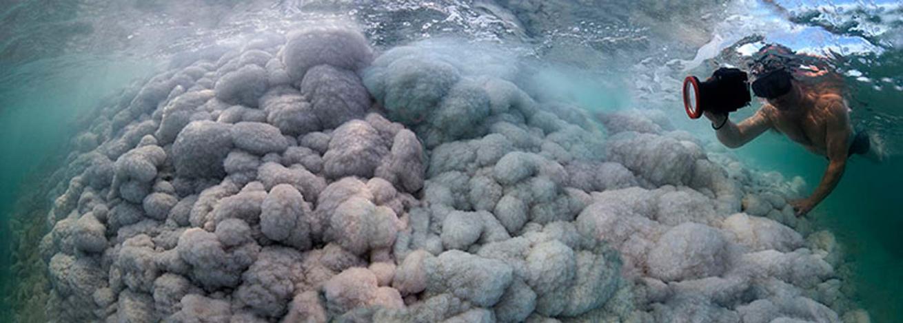 At more than 1,000 feet below sea level, the Dead Sea is the deepest lake in the world. Once connected to the sea - hence the salt - this lake between Israel, Jordan and the West Bank is so dry that it loses water rapidly, more than three feet per year. Today the concentration of salt in the water is about 33 percent, which causes it to crystallize on shore. For diving this environment, you need a full-frame mas and lots of weights. Swimming it is easier, but you still don't want to get even a drop of water near your eyes.