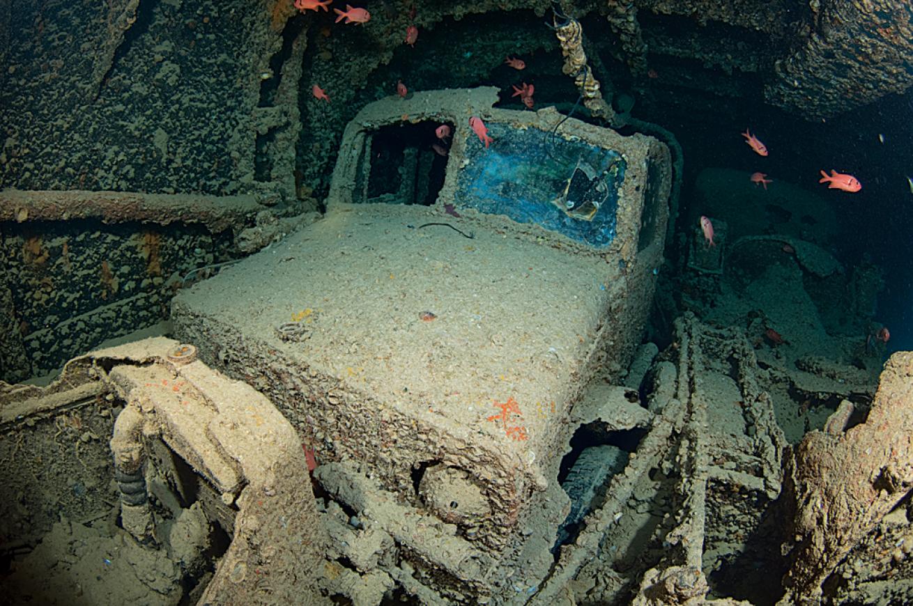 It’s a little after daybreak. The quiet on board breaks without warning, replaced with loud commands delivered in terse Arabic as the agile crew swings into position to man the lines. We have arrived. My dive boat has been motoring along the coast of Egypt’s Sinai Peninsula for nearly four pre-daylight hours. I walk out of the main cabin, where I’ve slept most of the bumpy ride huddled on the thin cushions of the bench lining the wall, and see the divemaster disappear over the side, bounce diving to tie a guideline from our stern to the wreck. I pour a cup of thick Arabic coffee from the galley and groggily prep my gear in the early morning light. In a few minutes, I’ll hop off the stern myself and make my way to the seafloor to penetrate the deepest bowels of what is arguably the most famous and historically rich shipwreck in the Red Sea.