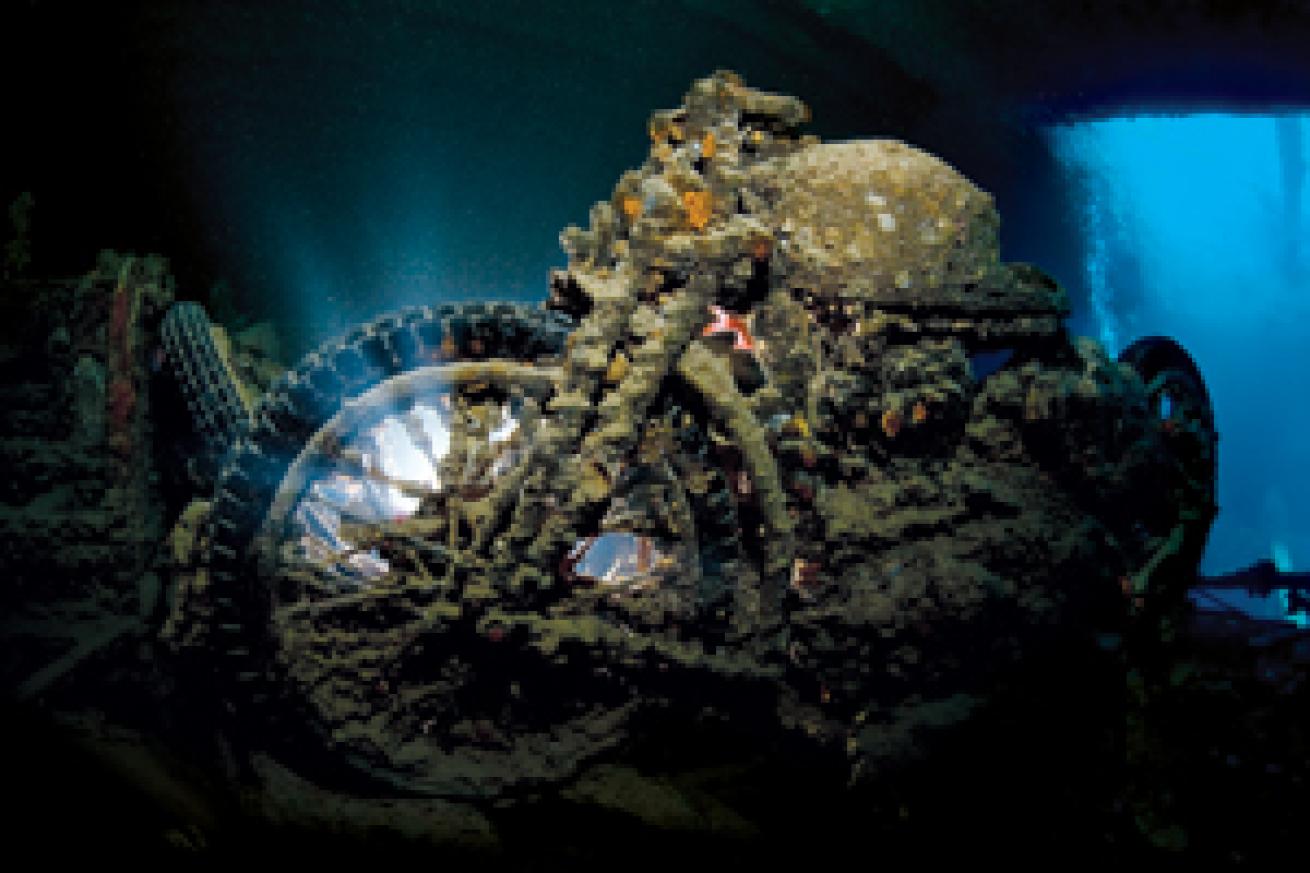 Alex MustardThis BSA M20 motorcycle in Hold 2 of the SS Thistlegorm was part of a shipment of military equipment on its way to aid the Allies during World War II.