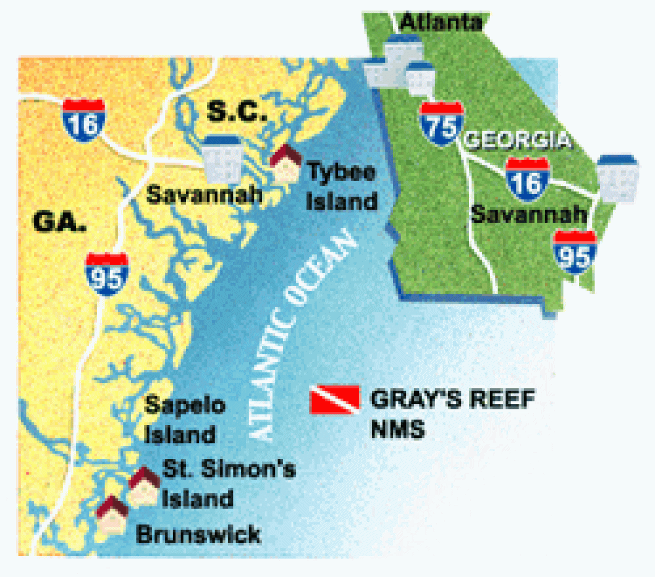 DIVE OPERATORS: Georgia Offshore, (912) 658-3884, www.georgiaoffshore.com; Island Dive Center, (800) 940-3483; www.islanddivecenter.com.