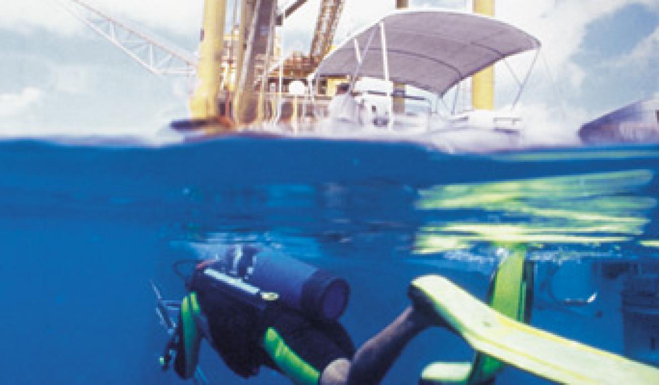 Use the safety/travel line - The dive boat crew will run a safety line between the entry point and a crossmember on the rig at a depth of about 25 feet. The difficulty in spotting divers in the open ocean and the busy boat traffic around rigs make this expressway between the boat and the rig your safest bet.