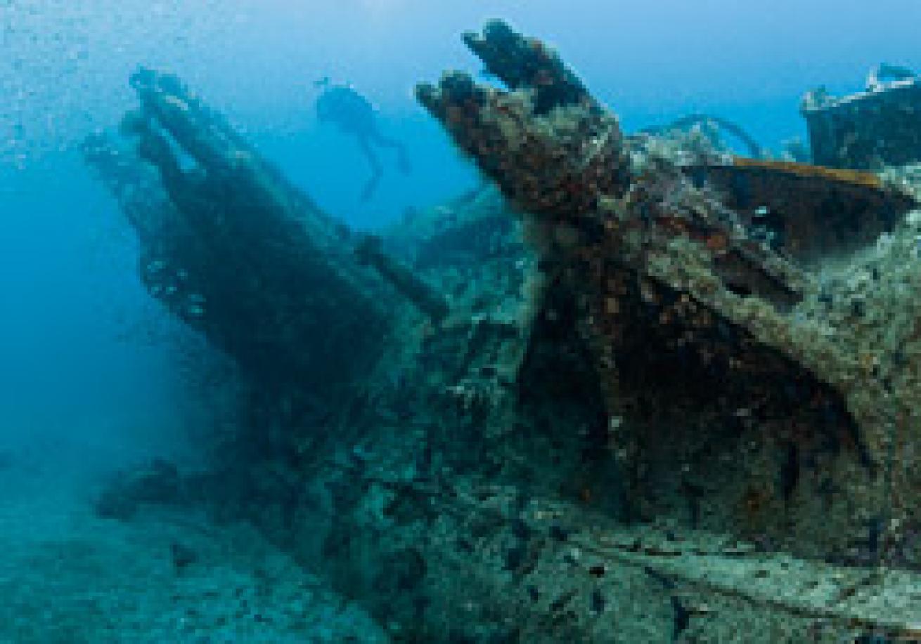 Today, anticipation builds on the ride out, but once there, patience is required while the crew situates the dive boat above the wreck. As is the case with most of the deeper wrecks in the area, the crew's greatest challenge is hooking onto the wreck. Before divers hit the water, a crewmember descends and manually ties onto the wreck, a procedure that can take 20 minutes or more in challenging conditions.