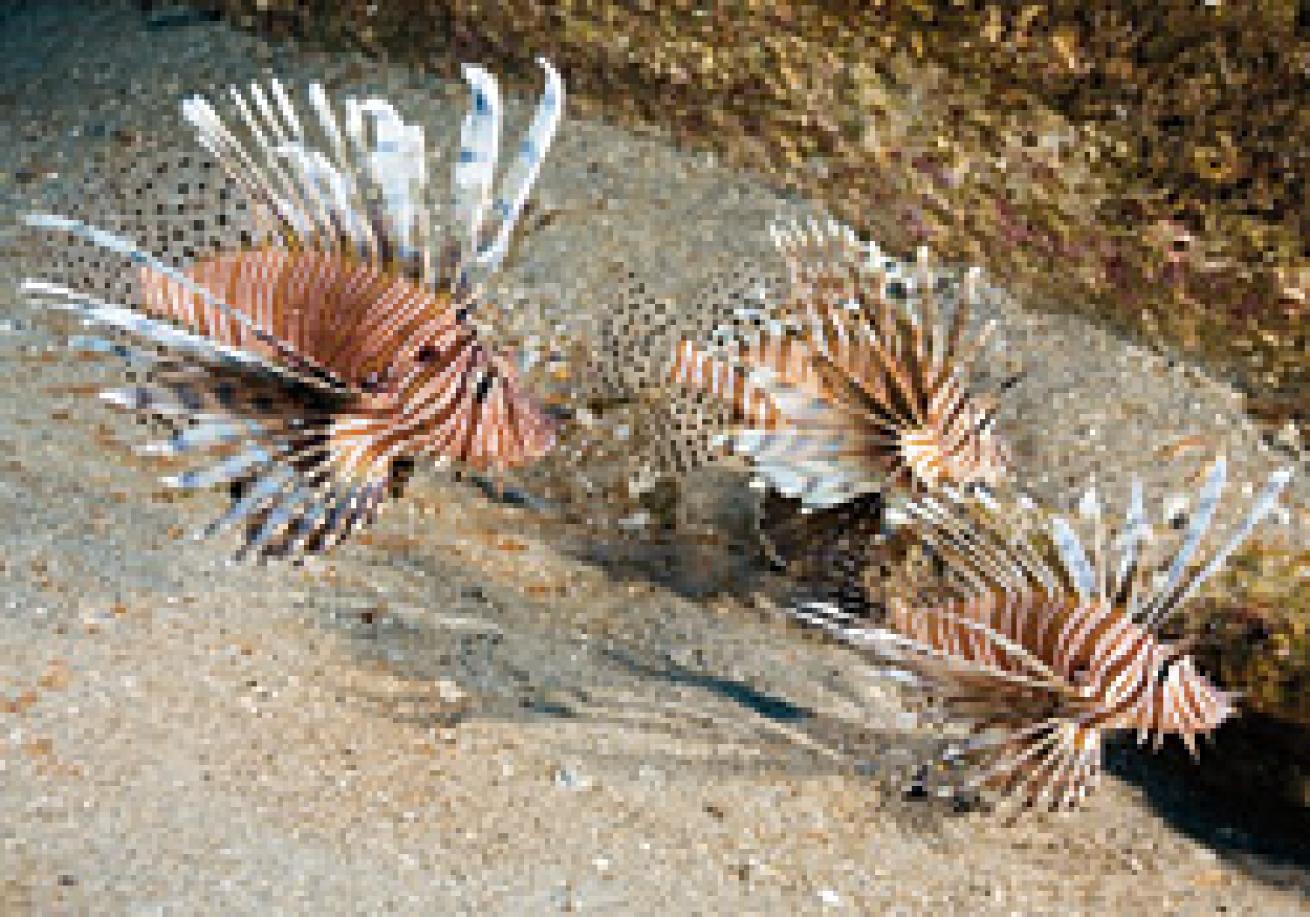 For fish-watchers, the wreck offers everything from large schools of spadefish, a variety of jacks, African pompano, sand tiger sharks, to--get this!--lionfish. Apparently jettisoned into the Atlantic by aquarium owners, this tropical Pacific native has made itself quite at home on most of the wrecks and deep-water ledges off the Outer Banks.
