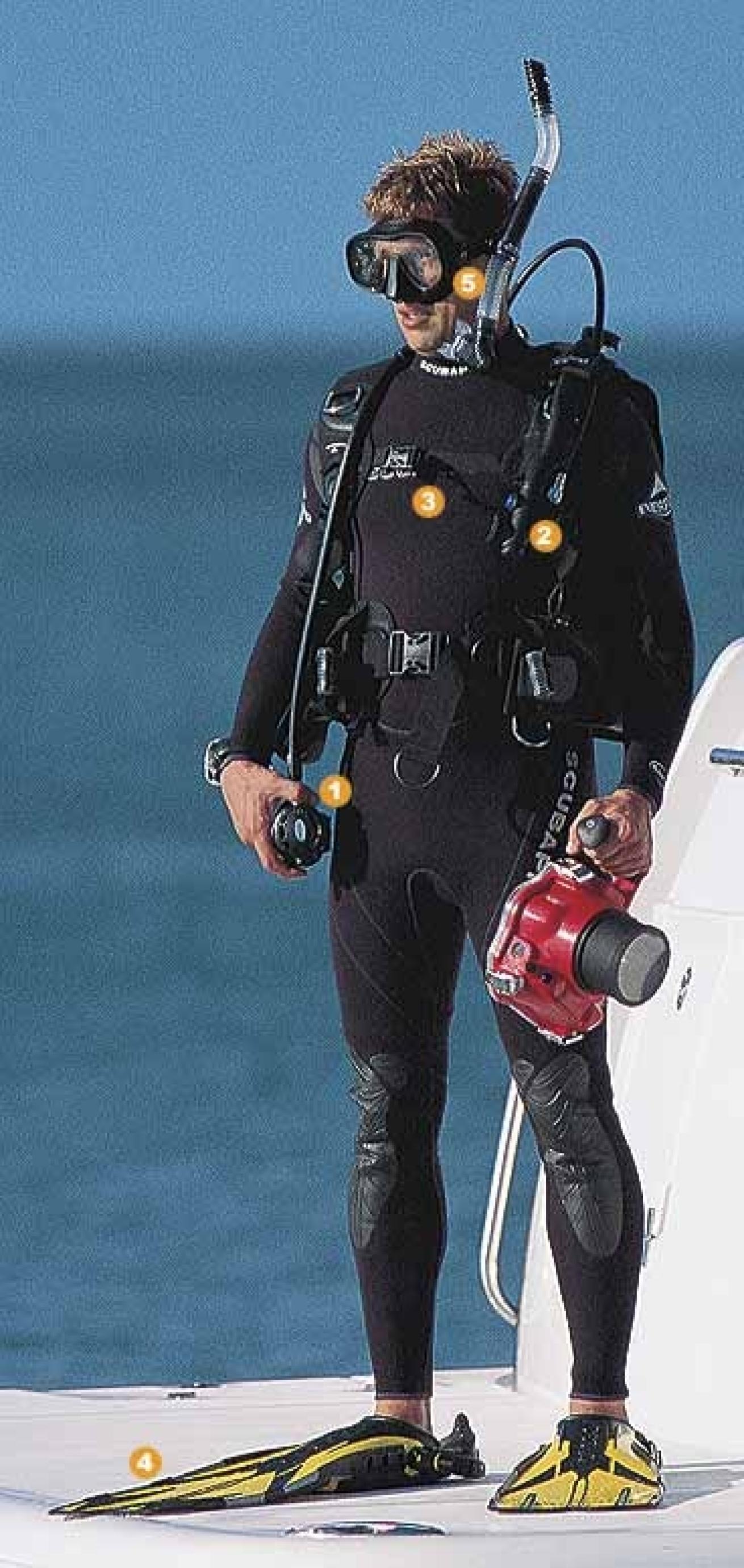 PADI U/W Photographer Course Learn the basics for serious or casual underwater photography. www.padi.com Additional Products and Information [pagebreak] Mares Nemo Computer The Nemo is an air/enriched air computer that you can use as a watch when you're not diving. Available in both steel and titanium casings, the Nemo has a decompression model that employs the latest theories. Adjustable for increased conservatism. Optional PC interface. MSRP: $730 www.mares.com 1. Aqualung Legend The sealed, overbalanced diaphragm first stage combined with a controlled venturi second stage offers reliability and adjustable high performance so you can concentrate on the shot instead of breathing. The Comfo-Bite mouthpiece reduces jaw fatigue, and four LP and two HP ports let you route your hoses exactly where you want them. MSRP: $495 www.aqualung.com 2. SeaQuest Balance BC Employing the back inflation photographers prefer, this BC uses an integrated weight system and a unique load distribution for comfort and trim control. Also has D-rings for clipping photo accessories until you need them. MSRP: $525 www.aqualung.com ** Oceanic Atom Wristwatch Dive Computer** The Atom is the size of a watch it is a watch but it's an EANx hoseless computer that can handle up to three mixes from three pressure transmitters. It's a good choice for the task-loaded underwater shutterbug. Computer interface and downloadable. MSRP: $949.95 complete with transmitter; $575.95 for Atom watch/computer only www.oceanicworldwide.com Bonica SEA-PIX 5.0 Megapixel A lot of camera in a small package, this system features a 200-foot depth rating, 5-megapixel resolution and 16MB internal memory. Macro and a 3X optical zoom make it versatile and convenient. MSRP: $649 www.bonicadive.com 3. Scubapro EverFlex Wetsuit Available in 3 and 7 mm for warmer and colder climes, the EverFlex material offers stretch for comfort and ease of donning with maximum abrasion resistance. MSRP: $273-$349 www.scubapro.com Scubapro Twin Jet fins The popular Twin Jet makes a great choice for models and photographers. MSRP: $189 www.scubapro.com ** 4. Cressi Sub Rondine A Fins** Rondine A's are the newest in the popular Rondine fin line. The A features Cressi's Balance Variable Flex Blade, designed to provide optimum thrust without undue ankle stress. The low-profile quick-adjust buckle minimizes drag while simplifying adjustment. MSRP: $130 www.cressisubusa.com ** Sealife SL148 Reefmaster DC310 Digital Camera** Submersible, digital and capable, the DC310 is a versatile point-and-shoot camera for first- time shooters. MSRP: $600 (as shown) www.sealifecameras.com ** Sea & Sea DX-D70 Housing for Nikon D70** A serious housing for serious digital underwater photography, Sea & Sea's DX-D70 is a full-featured top-end professional housing. Designed to take full advantage of the Nikon D-70's 6.1-mp resolution, the DX-D70 accepts Sea & Sea's multiple flat and dome ports so you can use exactly the lens you need. The DX-D70 is made of ABS resin and polycarbonate. MSRP: $1,995 (as shown, housing only) www.seaandsea.com 5. Oceanic Shadow Frameless Mask Eliminating the frame gives you a wide field of vision in a compact, low-volume, lightweight mask. Available in three sizes, black or translucent. MSRP: $79.95 www.oceanicworldwide.com
