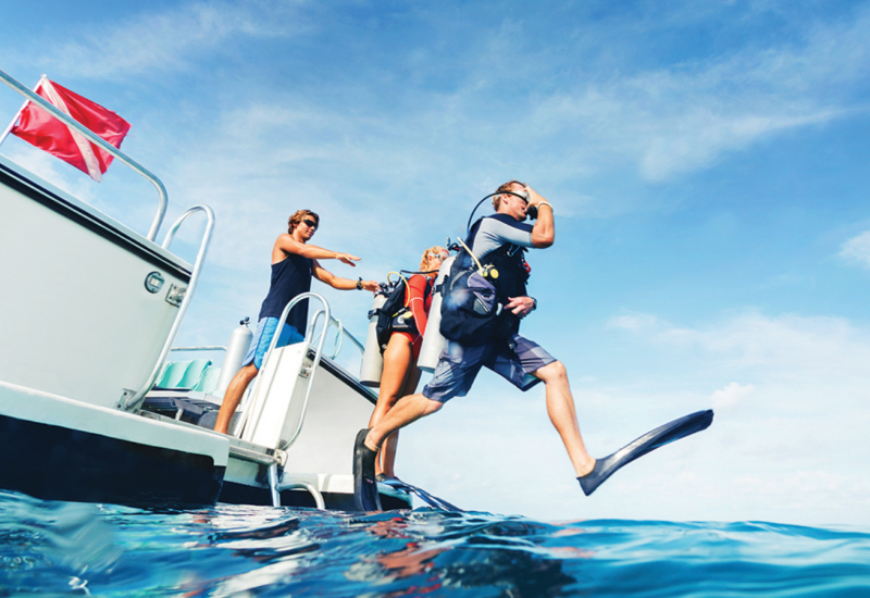 Shop ‘til you drop, into a shark tank. You won’t be bubbling in the Dubai Mall’s famous dancing fountain, but at over 12 million square feet, leave it to the world’s largest shopping center to offer a dip with 33,000 aquatic animals to mark your open water cert. No, the initial dive doesn’t need to be nose-to-nose with the facility’s sand tiger sharks, reef sharks, leopard sharks, tawny nurse sharks, giant groupers and stingrays —there are 140 other species within the Dubai Aquarium and Underwater Zoo to meet while you clear that mask and toss/retrieve your reg. Taking three floors of the shopping center, there are, ahem, otter creatures to meet during your surface intervals—penguins and a king croc among the wild options.